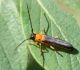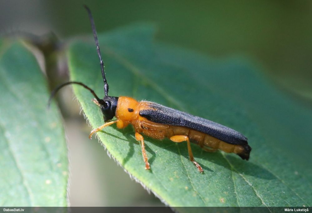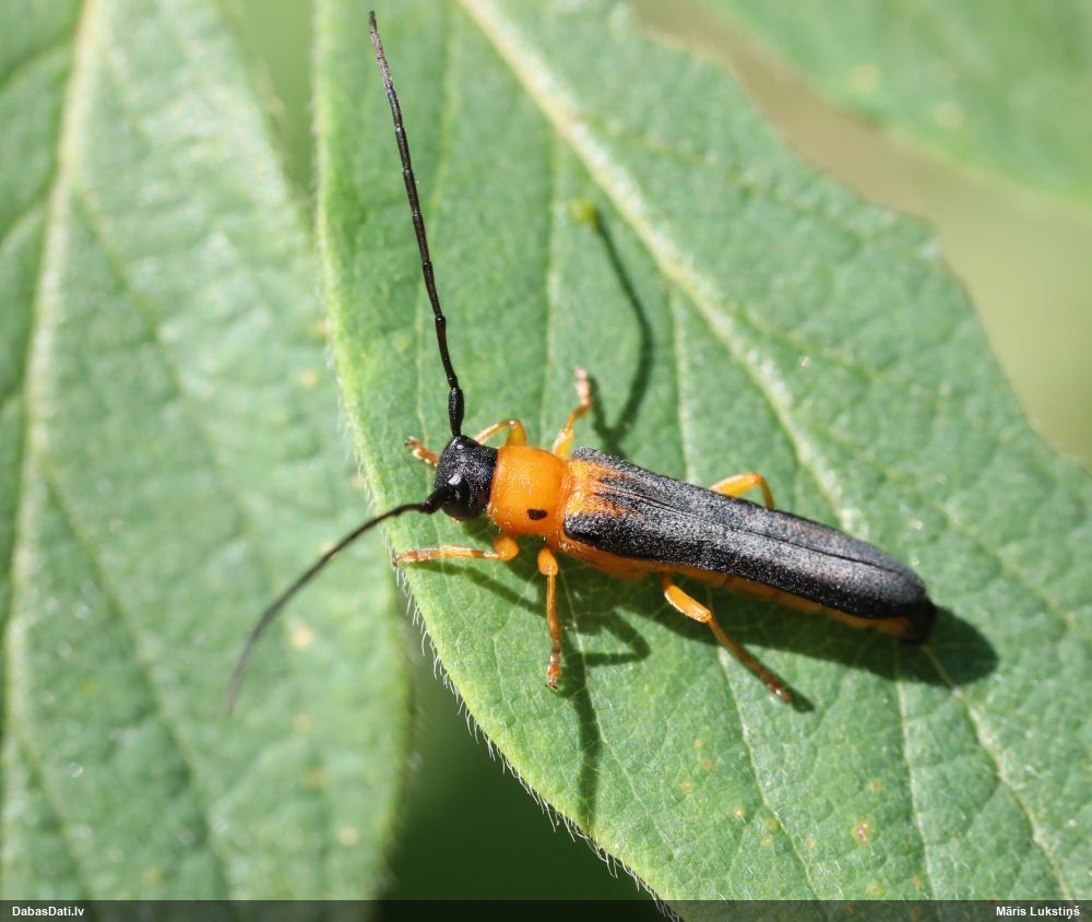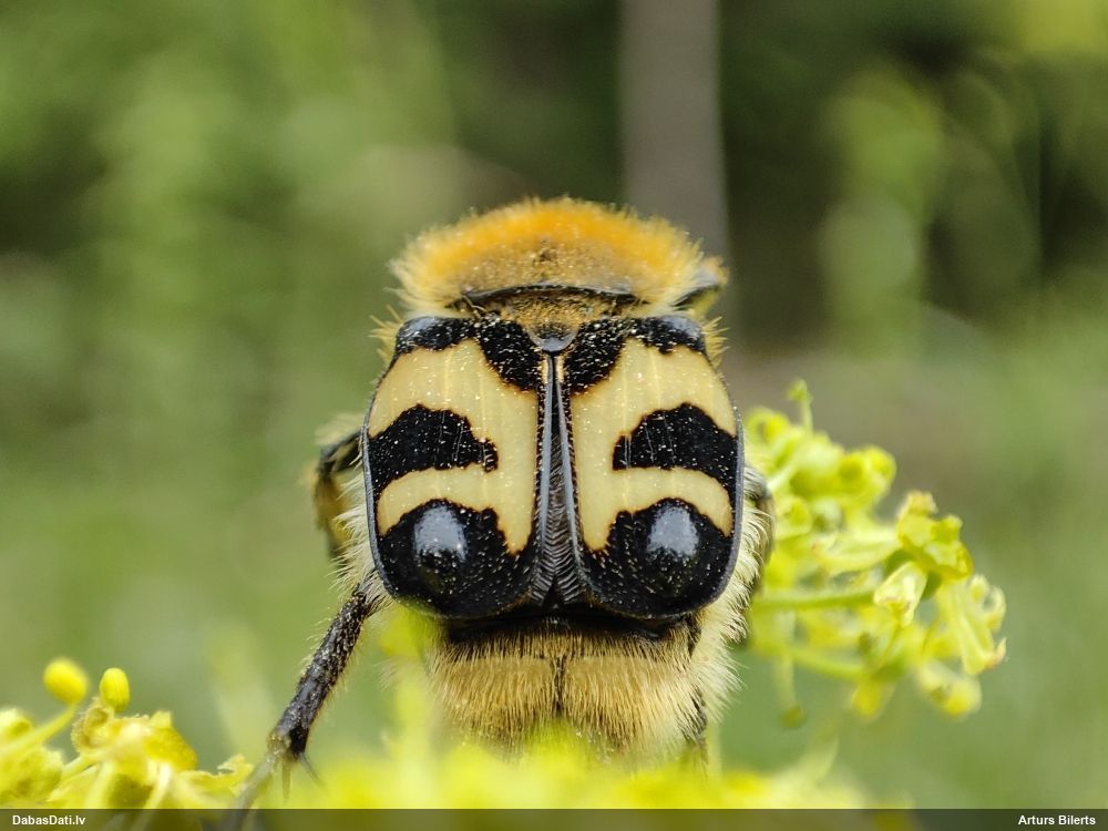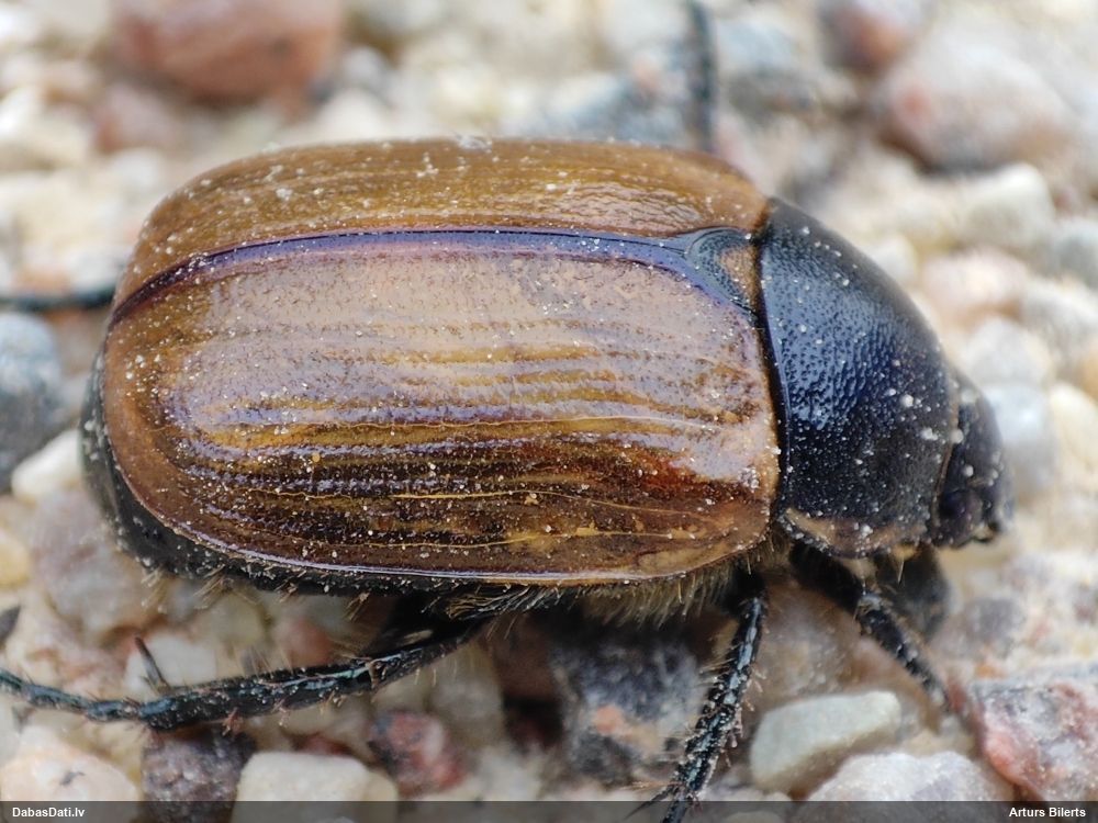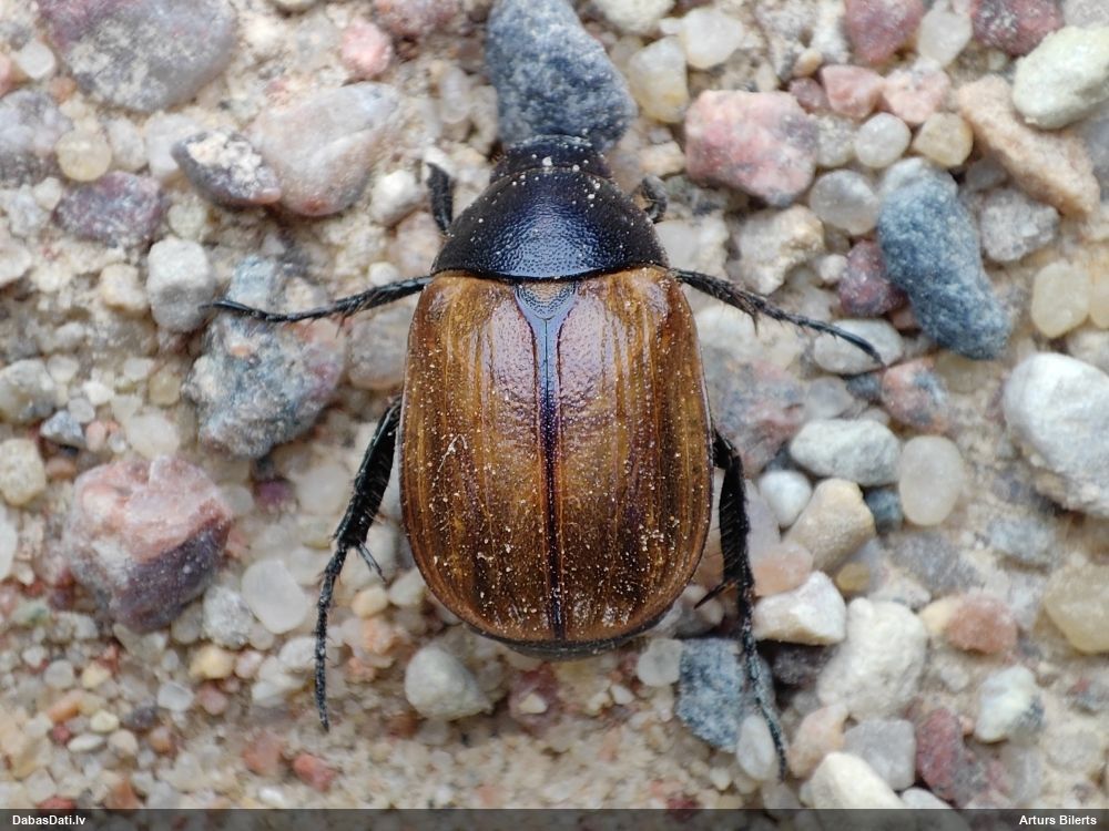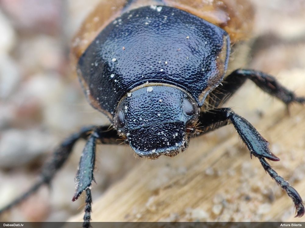Jāredz tuvāk (kaut vai izkadrēts šis pats attēls) - varbūt tumšā eļļasvabole (Meloe proscarabaeus)
