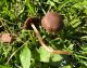Vairākas galviņas uz pagaras kājiņas, sporu mākonis dzeltens (ne sarkans, kā šunu daudzpilītei).