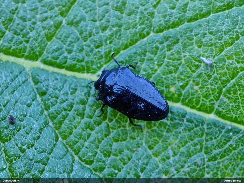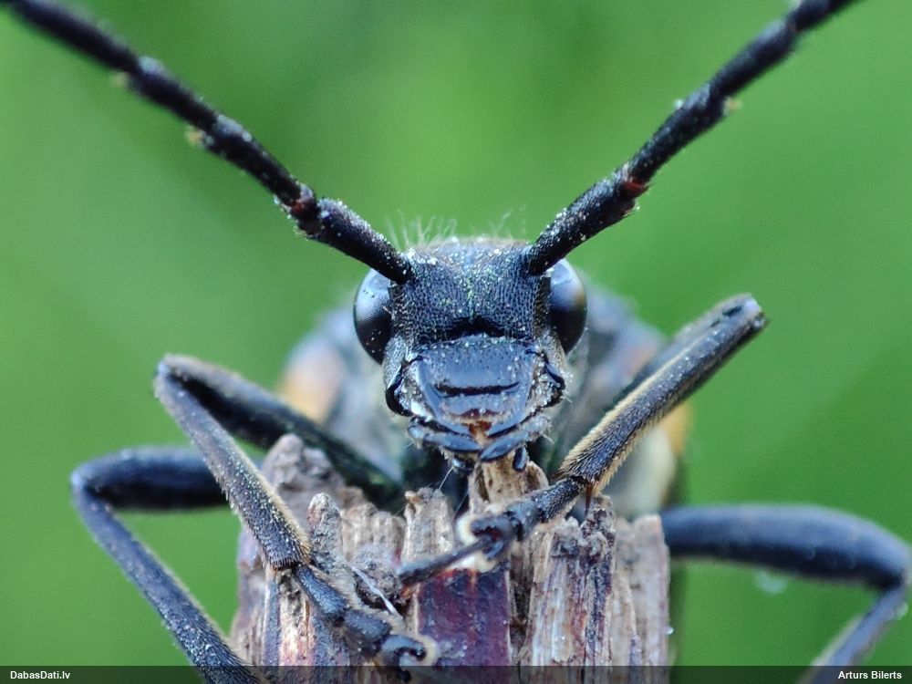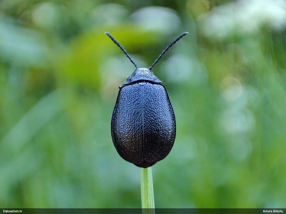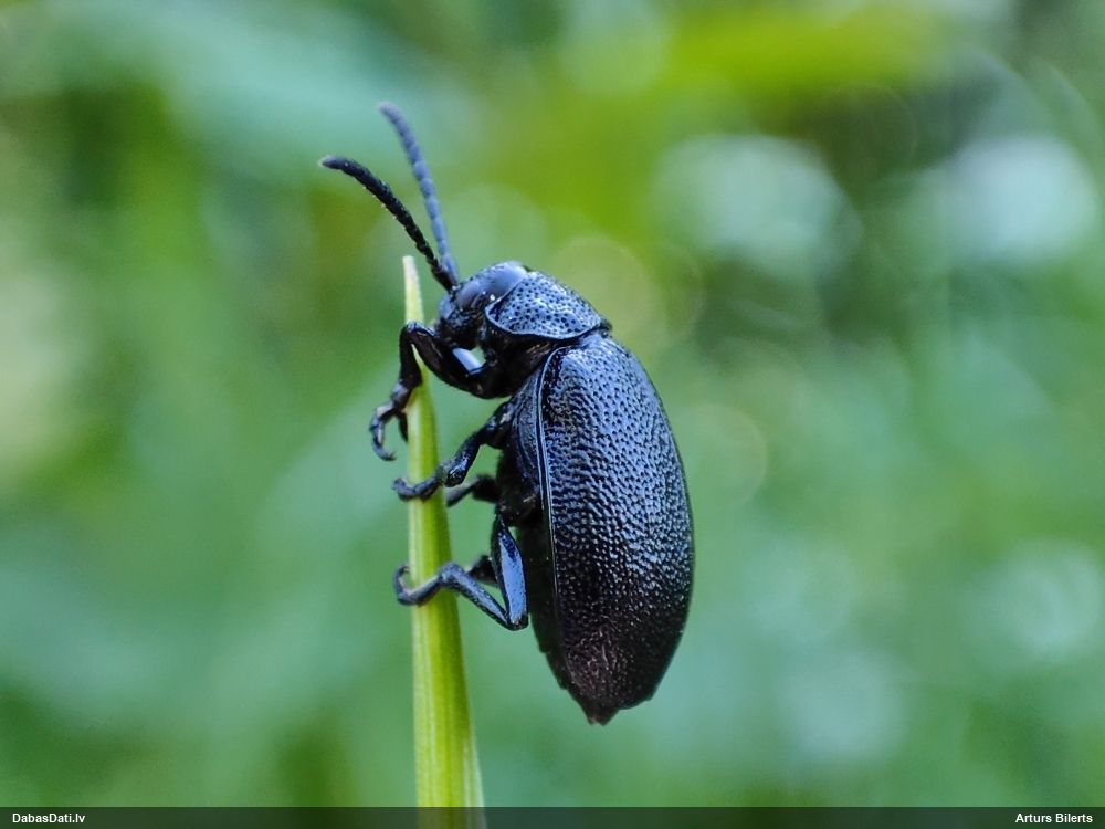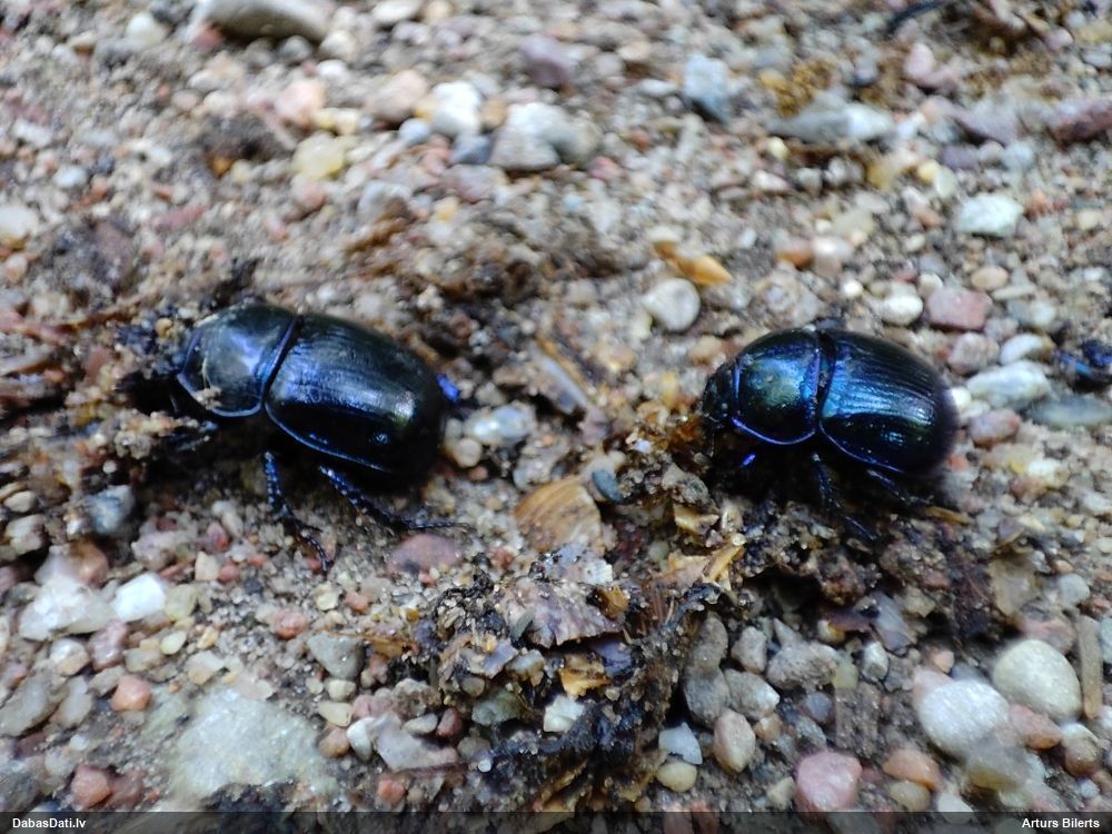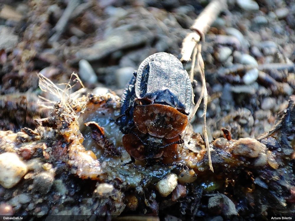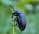 Jāredz tuvāk (kaut vai izkadrēts šis pats attēls) - varbūt tumšā eļļasvabole (Meloe proscarabaeus)