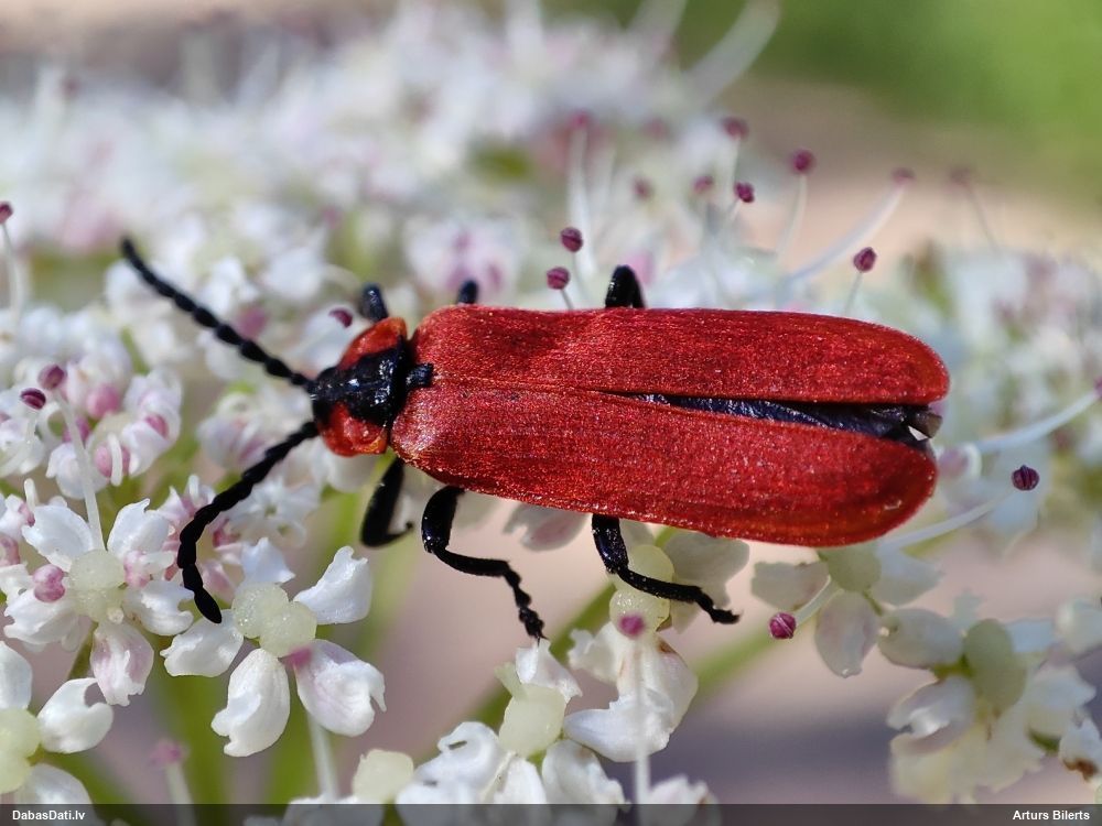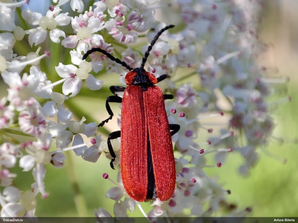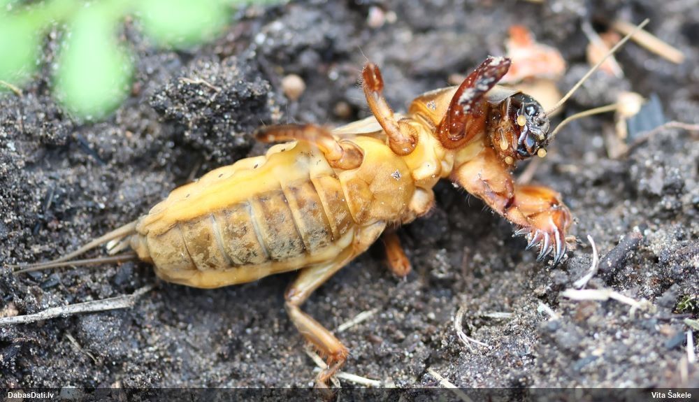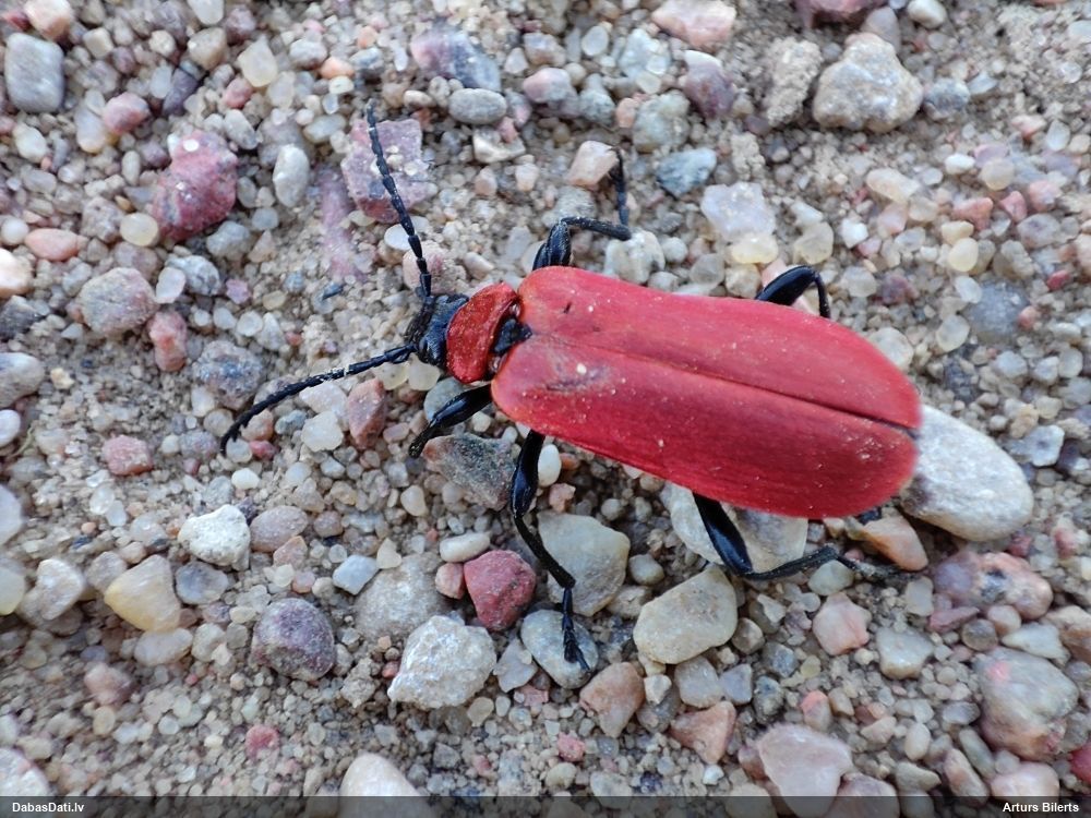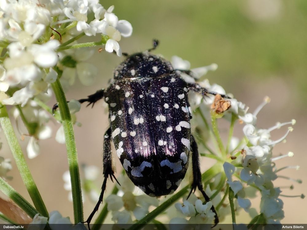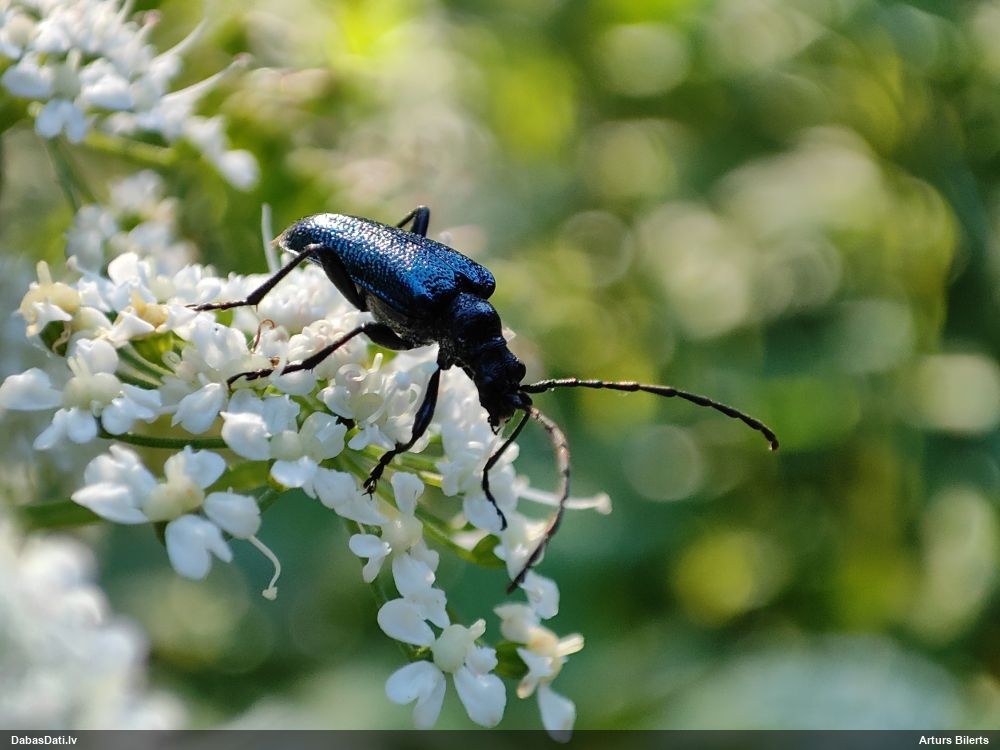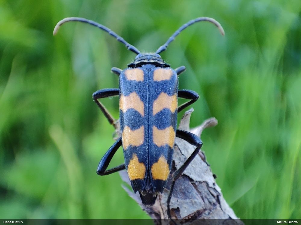 Jāredz tuvāk (kaut vai izkadrēts šis pats attēls) - varbūt tumšā eļļasvabole (Meloe proscarabaeus)