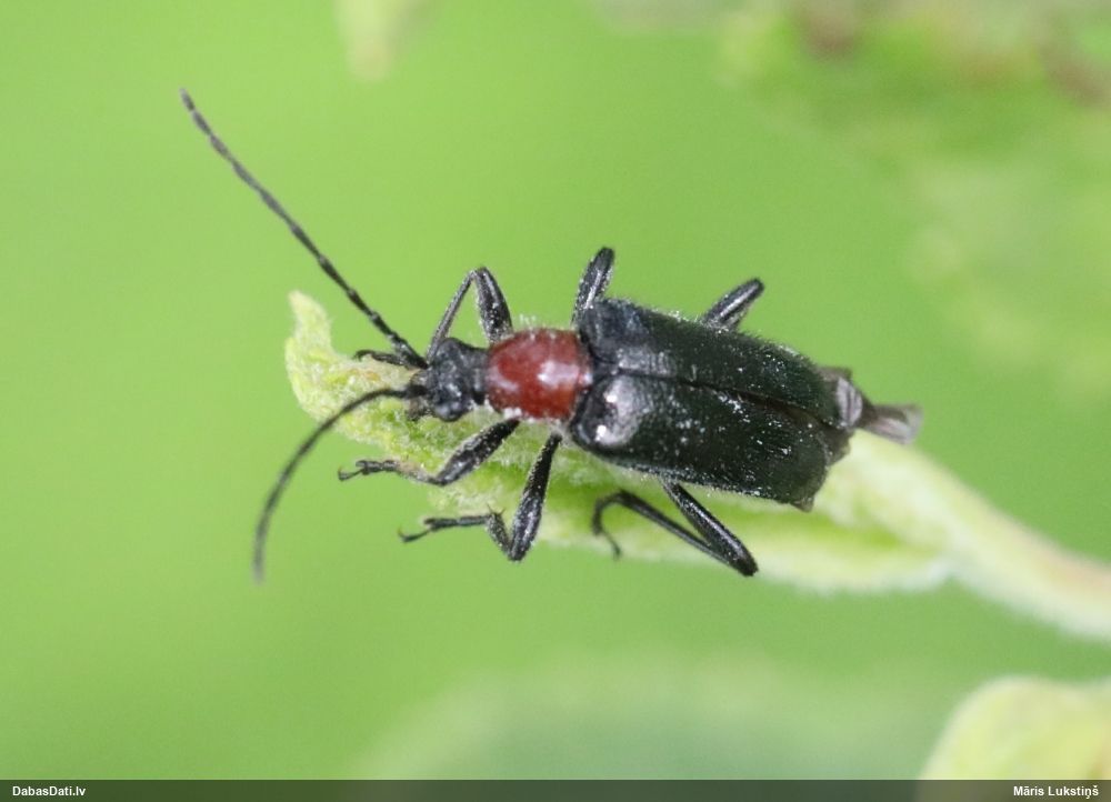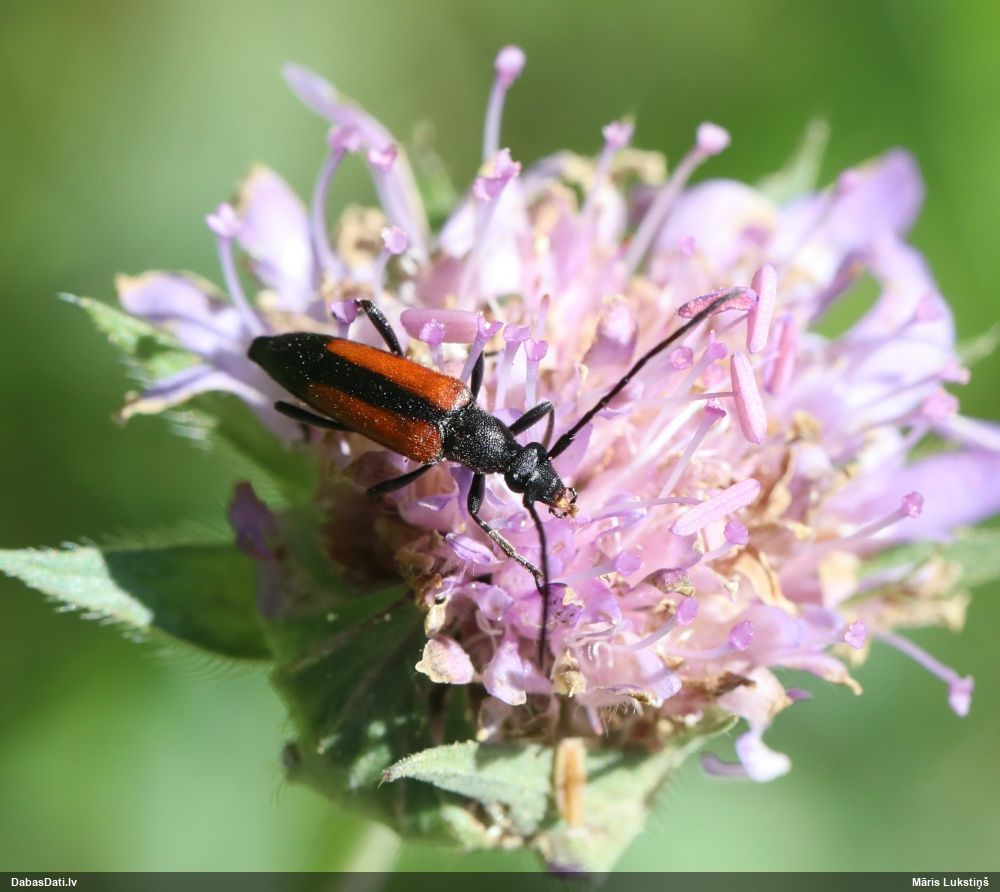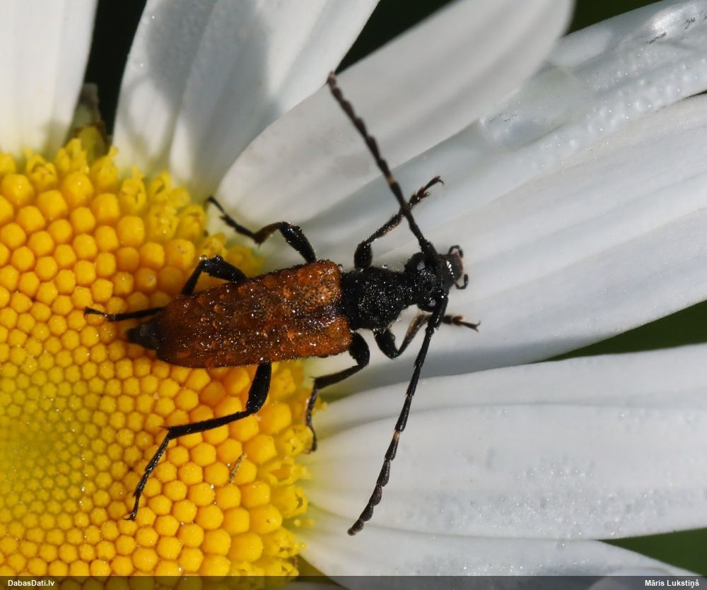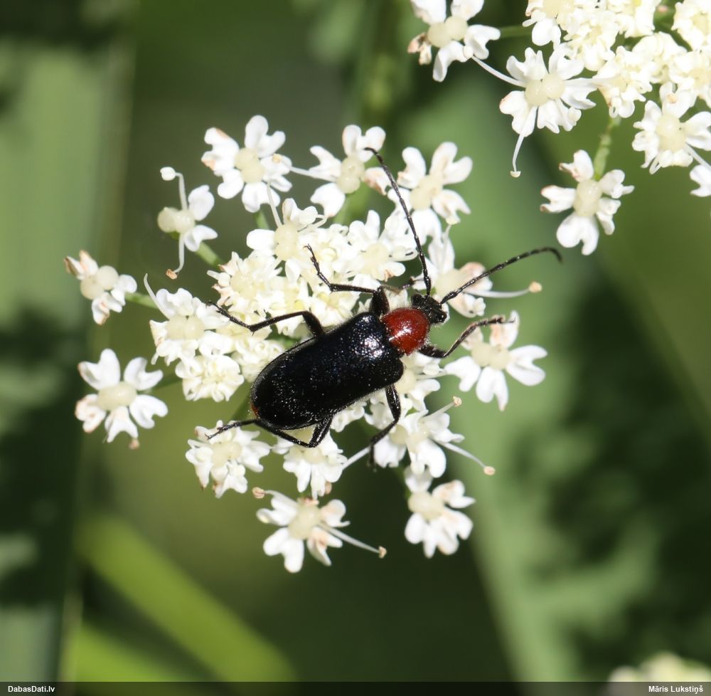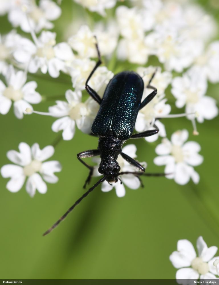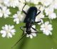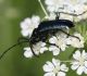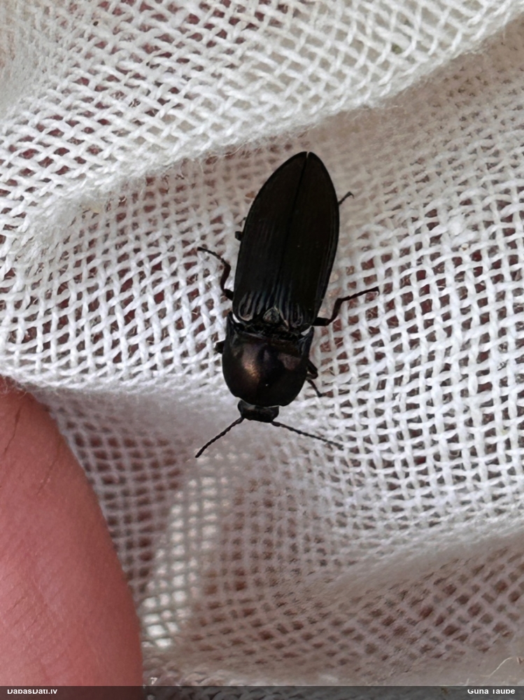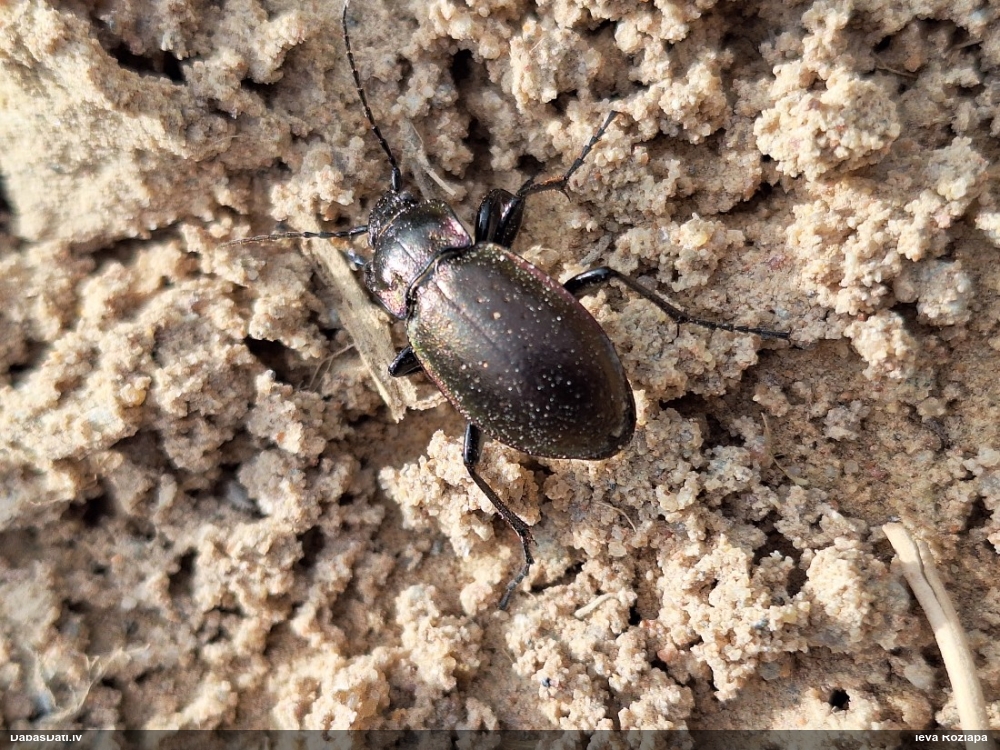 Jāredz tuvāk (kaut vai izkadrēts šis pats attēls) - varbūt tumšā eļļasvabole (Meloe proscarabaeus)