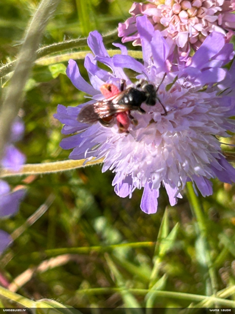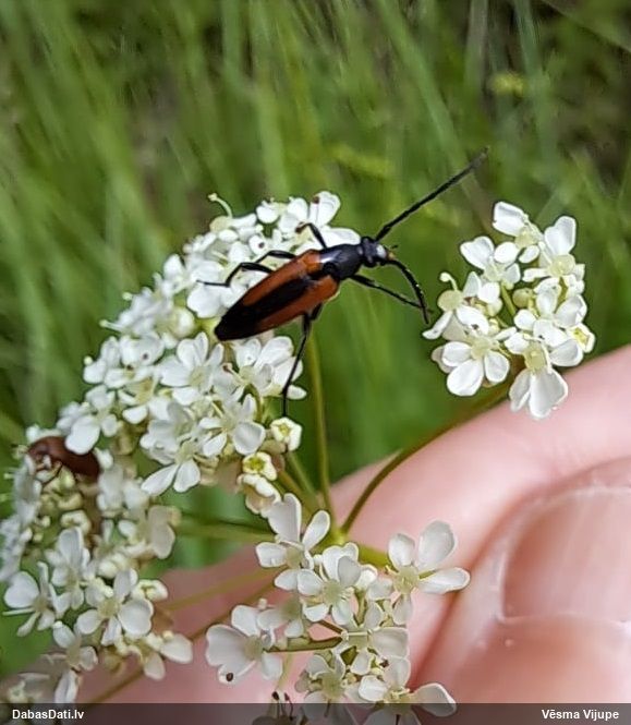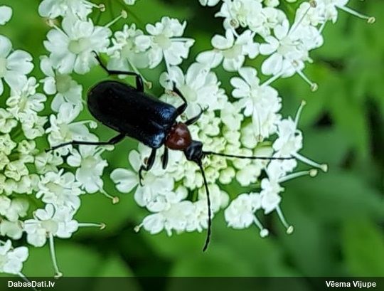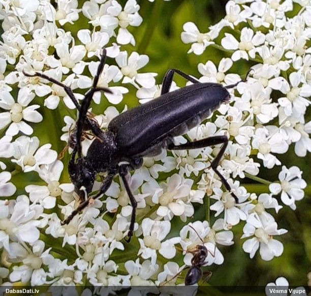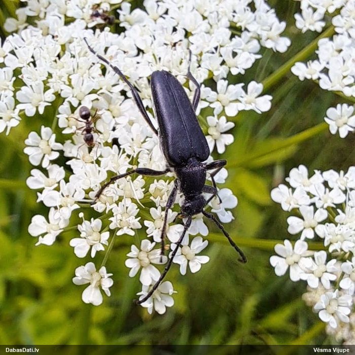 Jāredz tuvāk (kaut vai izkadrēts šis pats attēls) - varbūt tumšā eļļasvabole (Meloe proscarabaeus)
