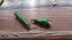 zaļš un zils augšā, uz kreisās kājas abiem baltajiem gredzeniem bij kaut kāda kaslīte.