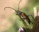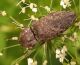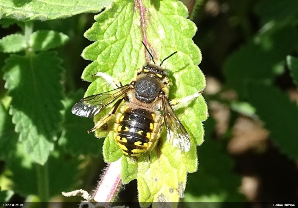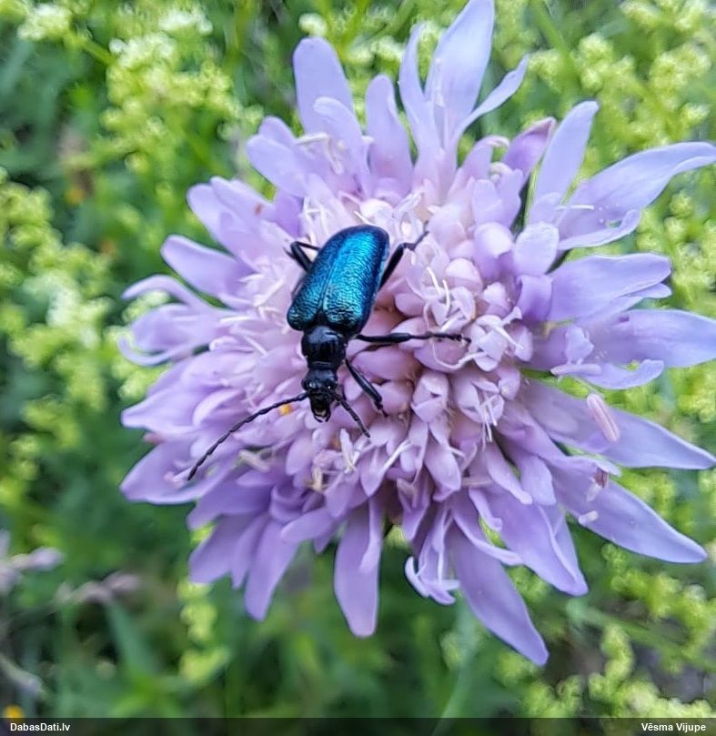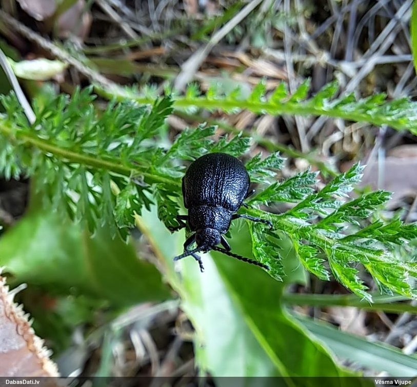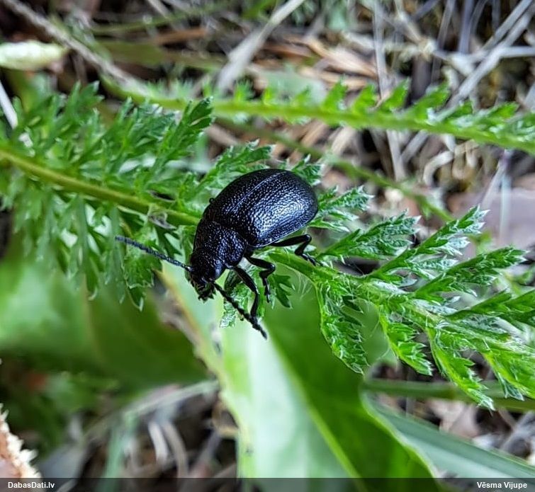 Jāredz tuvāk (kaut vai izkadrēts šis pats attēls) - varbūt tumšā eļļasvabole (Meloe proscarabaeus)