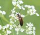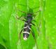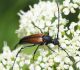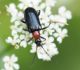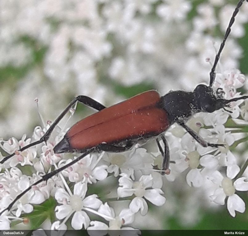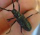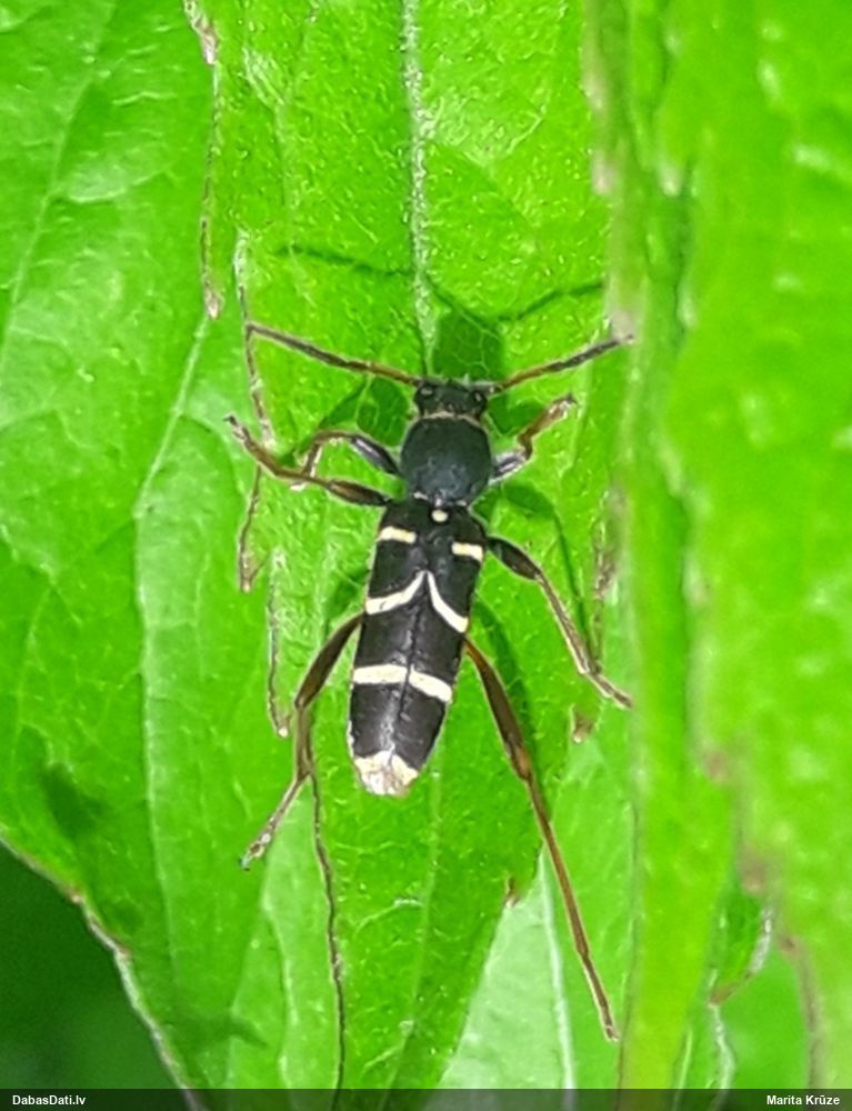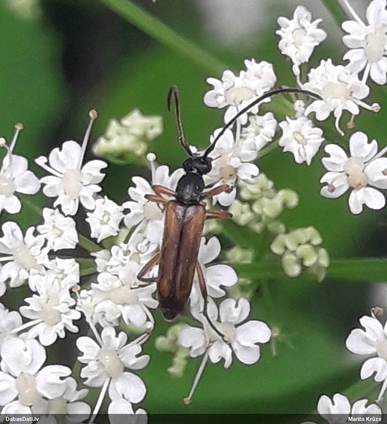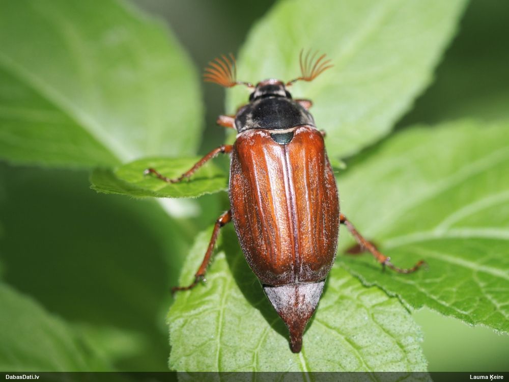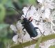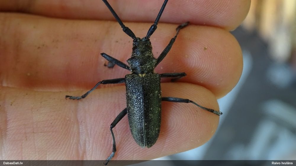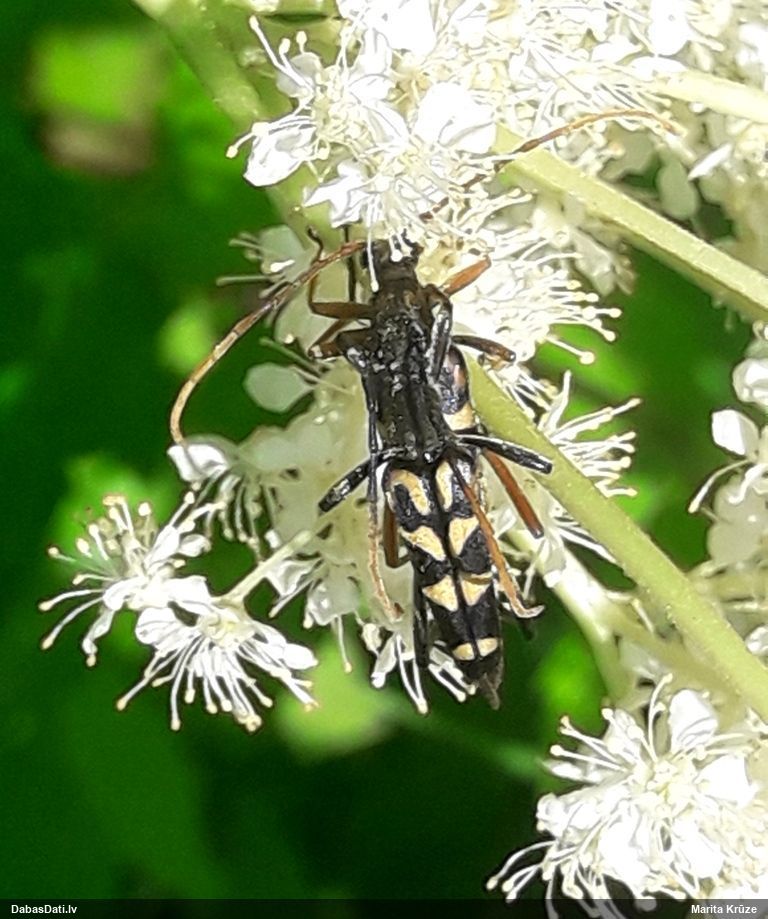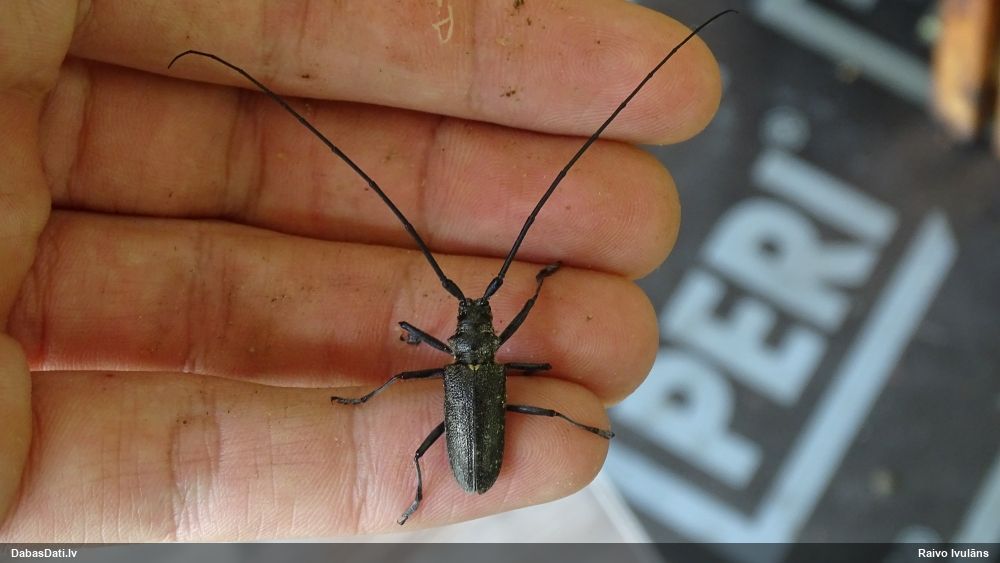 Jāredz tuvāk (kaut vai izkadrēts šis pats attēls) - varbūt tumšā eļļasvabole (Meloe proscarabaeus)