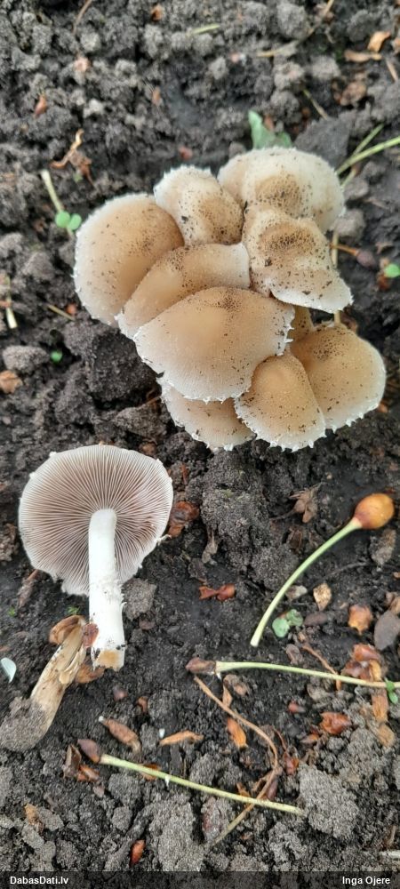 Vairākas galviņas uz pagaras kājiņas, sporu mākonis dzeltens (ne sarkans, kā šunu daudzpilītei).