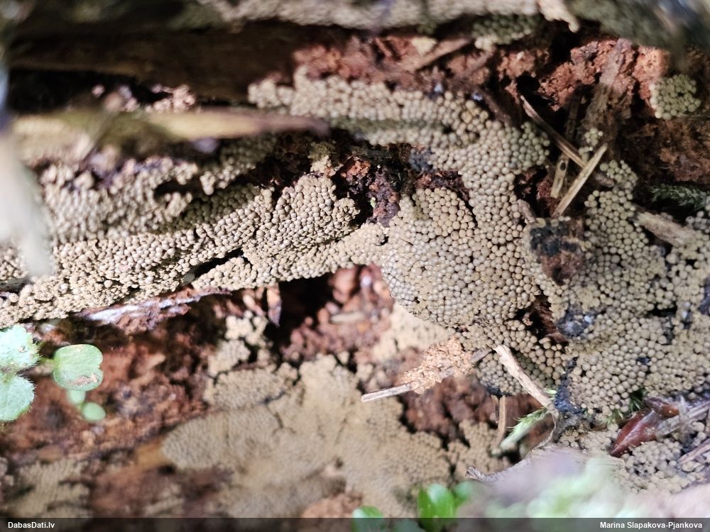 Cukurīte (Didymium) vai pumpurīte (Physarum)? Man galviņas virsma šķiet vairāk kā cukurītei, bet uz sēnes .. pieredze ar pumpurītēm.