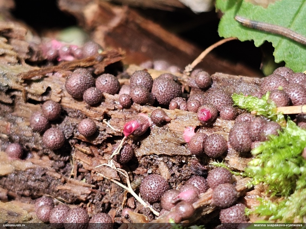 Cukurīte (Didymium) vai pumpurīte (Physarum)? Man galviņas virsma šķiet vairāk kā cukurītei, bet uz sēnes .. pieredze ar pumpurītēm.