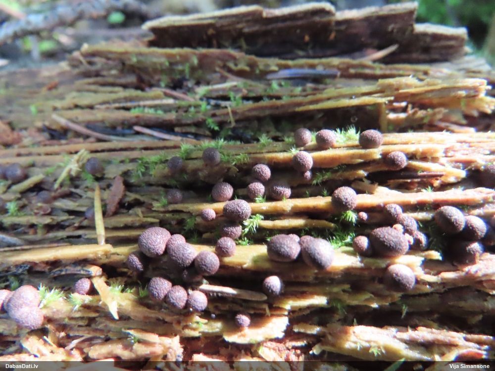Cukurīte (Didymium) vai pumpurīte (Physarum)? Man galviņas virsma šķiet vairāk kā cukurītei, bet uz sēnes .. pieredze ar pumpurītēm.