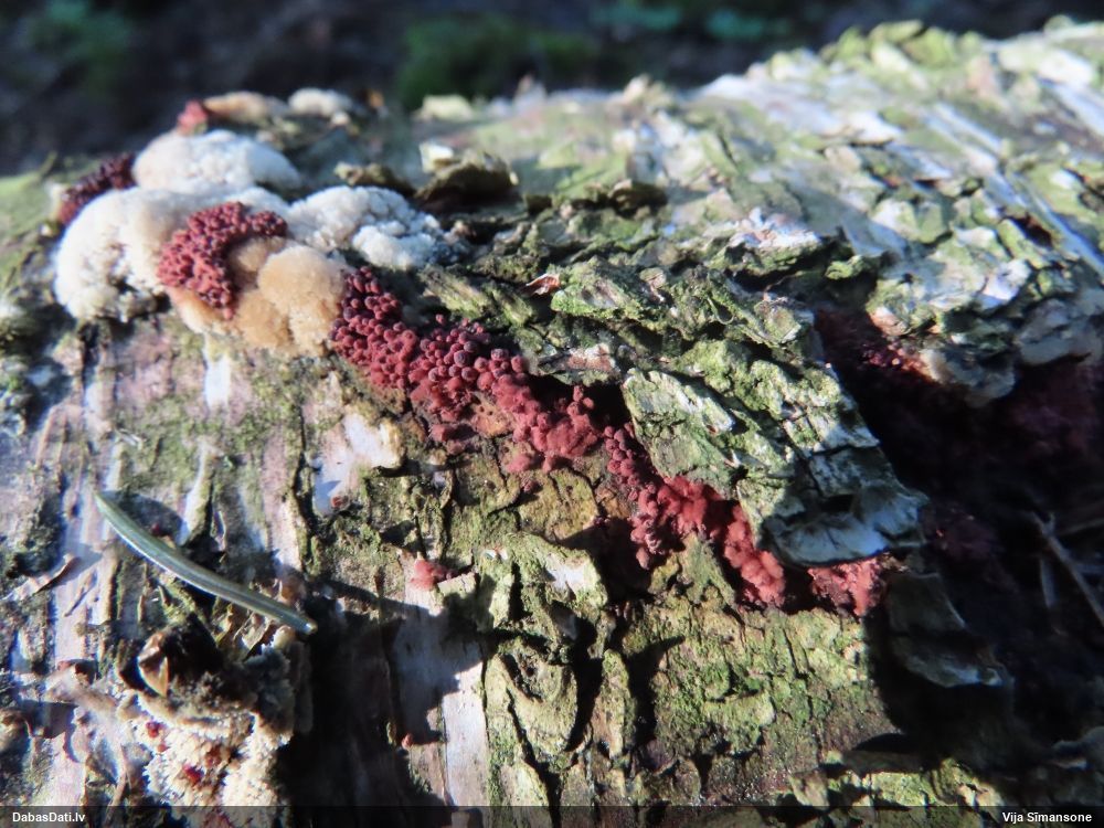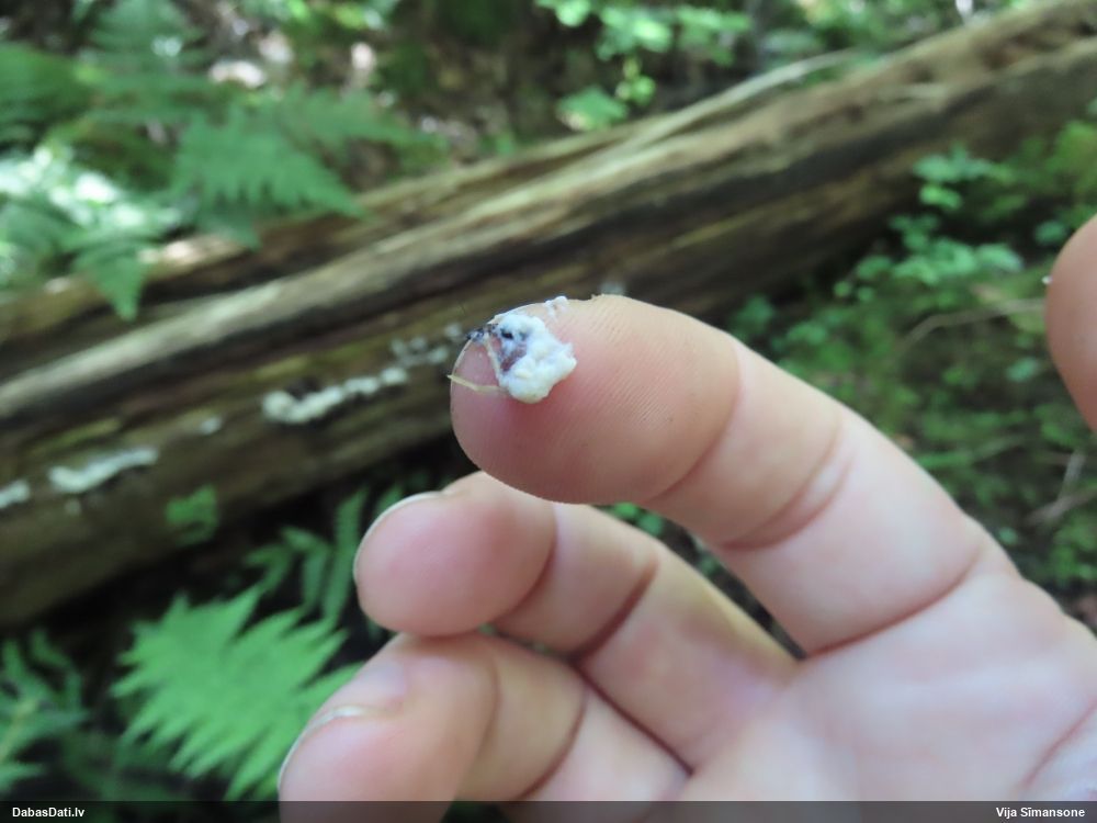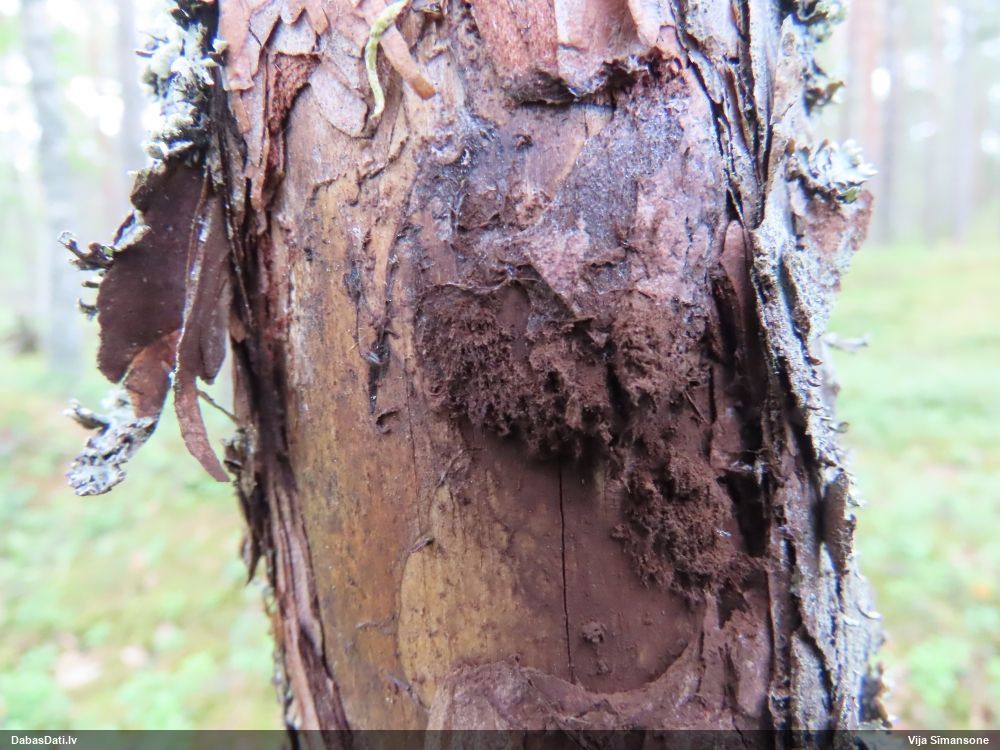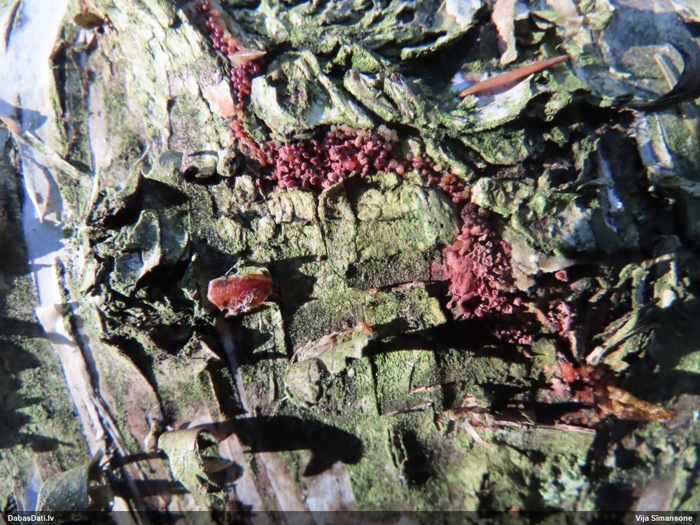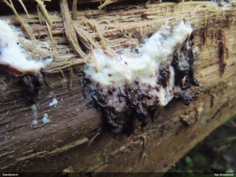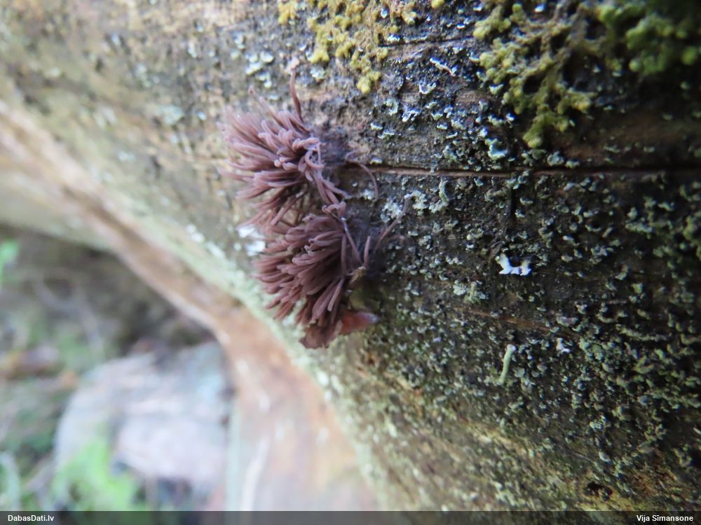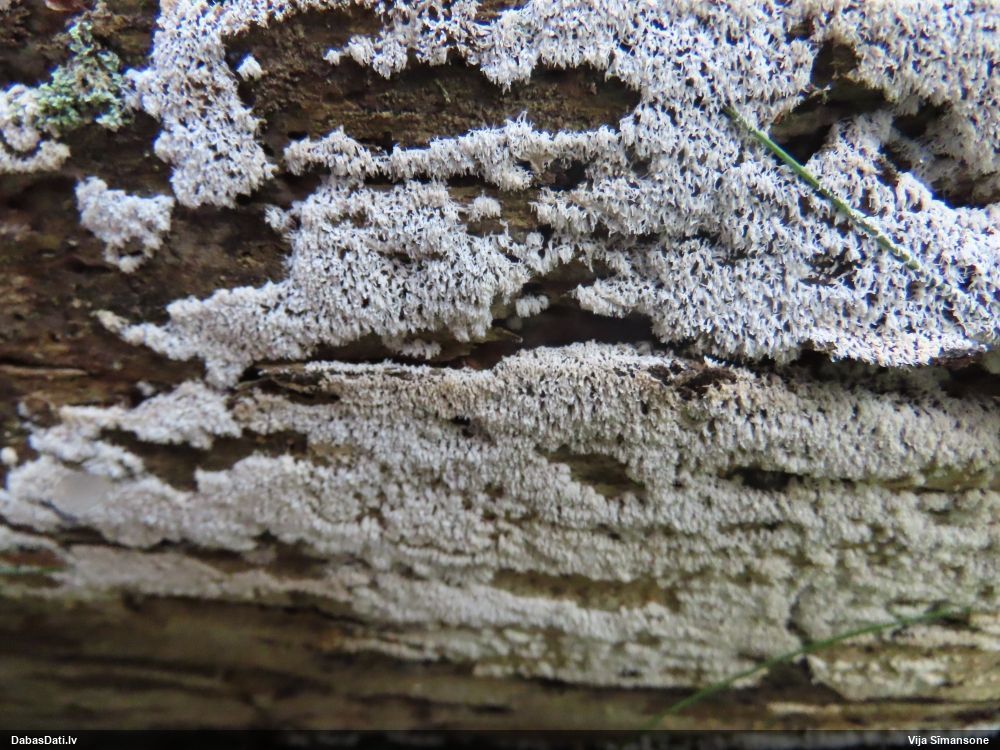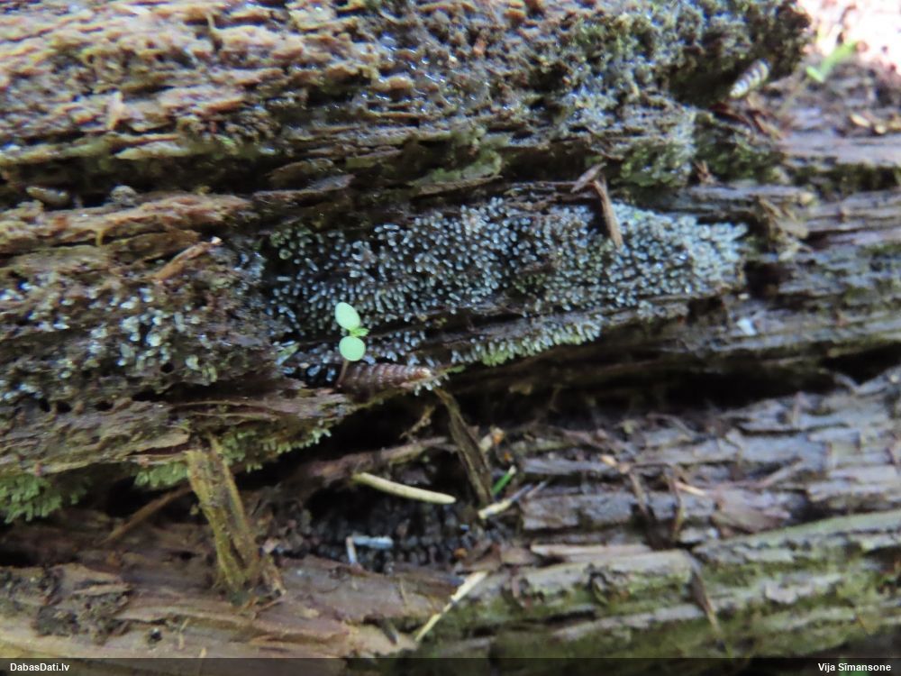 neatceros, kad tik ļoti nevarējusi sagaidīt mikroskopēšanu savam paraugam, kas identisks ar šo novērojumu. Mizaine ir. Vistuvāk no tā, ko paguvu izpētīt, tiešām kārpainā mizaine, bet kapilīcijs, manuprāt, ir mazliet citādāks, nemaz nerunājot par to, ka tā ļoti daudz un pat staipīgs (kārpainajai kapilīcijs maz un nestaipās). Un Neuberta aprakstā tikko iztulkoju par substrātu "Tā substrāts ir gandrīz tikai lapu koku miza, tikai vienā Picea gadījumā, dažreiz arī uz sūnām". Bet mums abām ir pārliecinošas egles un kopīgs izskats, kas atšķiras no kārpainās, nu neticu, ka varētu būt kārpainā. Ticamāk, ka zinātnei jauna suga :D. bet es vēl papētīšu, varbūt kaut kur tomēr ir kas tāds aprakstīts.