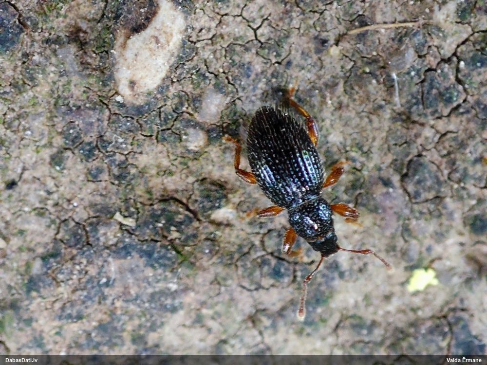 Izskatīju zinātnē aprakstītās Badhamia. Un Badhamiopsis. Tuvākā izskatās Badhamiopsis nivisimulans, kam raksturīgas ciešas grupas uz dzīviem kokiem (bet vai šis ir dzīvs?). Sporas līdzīgas, bet te raksturīgas arī dažas ļoti ovālas un lielas sporas, kādas foto neredz, bet varbūt ir? Un jābūt ar gaišu līniju pāri, to pagaidam neatradu. Bet tonis un kārpas līdzīgas. Izmēram būtu jabūt (10-)11-14 mkm vai ovālām garākām. Es teiktu, ka šai līdzīga, bet cita suga. Bet citu man piedāvājumā pagaidām nav. Pēdējā foto teiktu, ka sporas negrupējas, tad atkrīt B.juliae. Bet tikko pamanīju priekšpēdējo foto un tagad man nav pārliecības, grupējas vai nē.