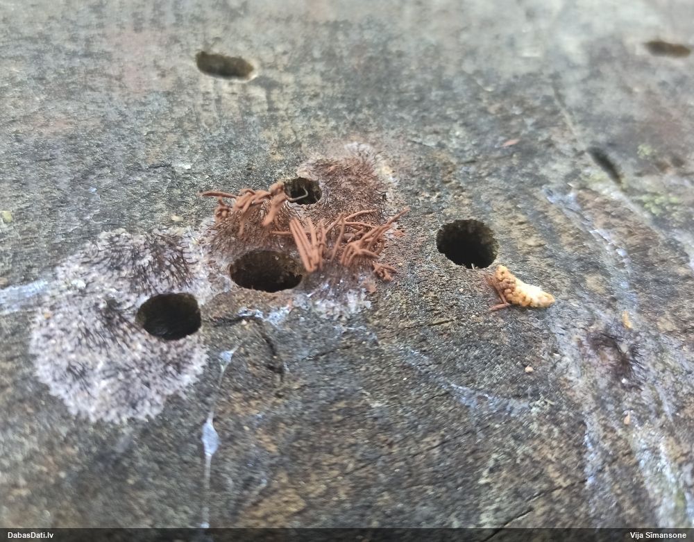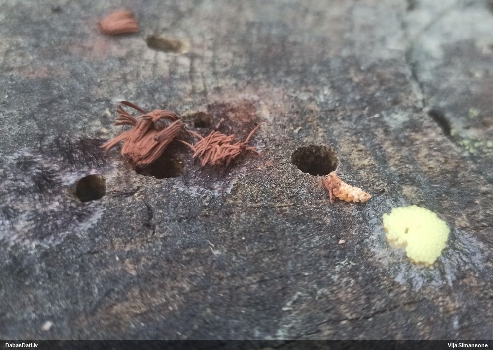 Nu vai tad šis nav Sorocybe resinae micēlijs, uz kura mēdz augt gļotsēne?