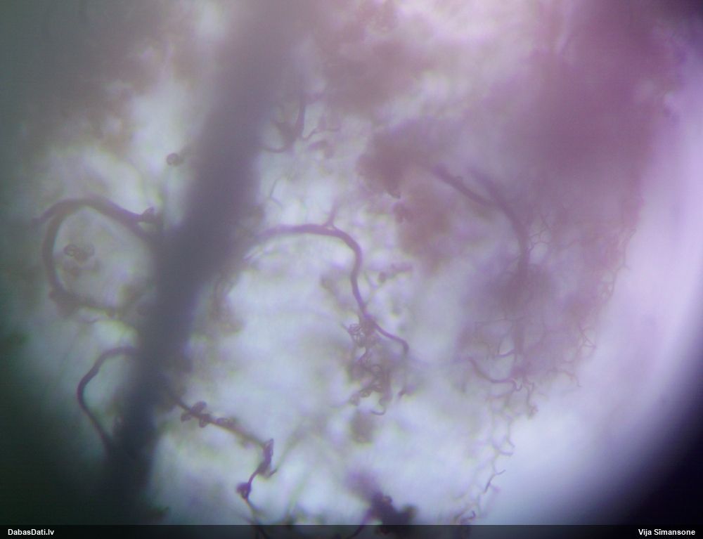 neatceros, kad tik ļoti nevarējusi sagaidīt mikroskopēšanu savam paraugam, kas identisks ar šo novērojumu. Mizaine ir. Vistuvāk no tā, ko paguvu izpētīt, tiešām kārpainā mizaine, bet kapilīcijs, manuprāt, ir mazliet citādāks, nemaz nerunājot par to, ka tā ļoti daudz un pat staipīgs (kārpainajai kapilīcijs maz un nestaipās). Un Neuberta aprakstā tikko iztulkoju par substrātu "Tā substrāts ir gandrīz tikai lapu koku miza, tikai vienā Picea gadījumā, dažreiz arī uz sūnām". Bet mums abām ir pārliecinošas egles un kopīgs izskats, kas atšķiras no kārpainās, nu neticu, ka varētu būt kārpainā. Ticamāk, ka zinātnei jauna suga :D. bet es vēl papētīšu, varbūt kaut kur tomēr ir kas tāds aprakstīts.