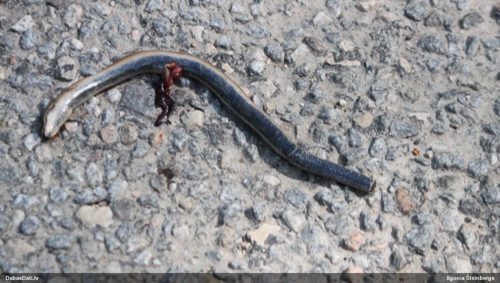 Pēc foto noteica Valdis Pilāts. Balts vēders kā klaidoņpelei, svītra pār muguru - svītrainā.