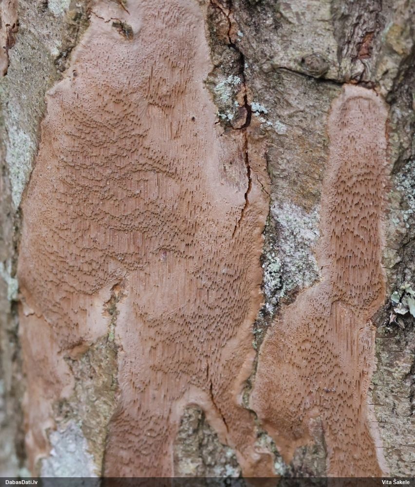 Vismaz vienai bildei mikroskopijā vajadzētu pielikt kādu mērogu, lai var saprast, kā mērīts, un samērīt, ja kas pietrūkst. O.persimile tipiski uz eglēm neaug, tāpēc pētu, vai nav noteikšanas kļūda. O.favogineum aug uz eglēm, tai mikroskopijā svarīga pazīme ir elateru platums, kas pārsniedz 6 mkm. Te elateras izskatās platas, bet "uz aci" noteikt platumu grūti. Vizuāli jau baigi medaino neatgādina, bet tur jau arī krustojumi iespējami. ja aug uz egles, tad gribas saprast, kāpēc.