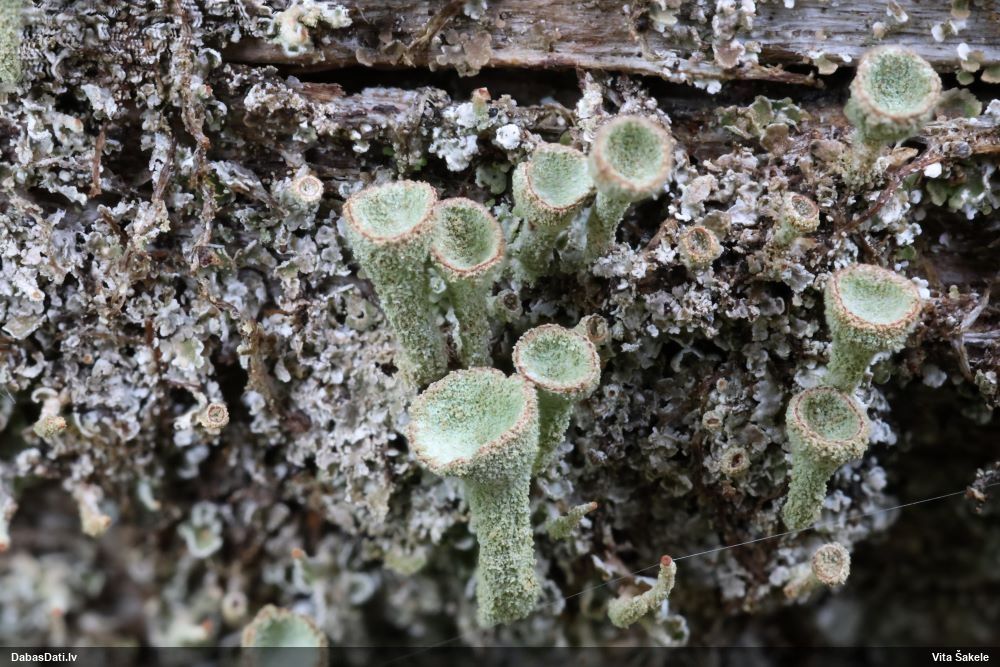 Raivo, nebūs Chaenotheca furfuracea, bet gan C.brachypoda (dabisku mežu indikatorsuga). C.furfuracea ir ar izteiktu laponi, daudz lielāki aķ un košāk zaļa krāsa