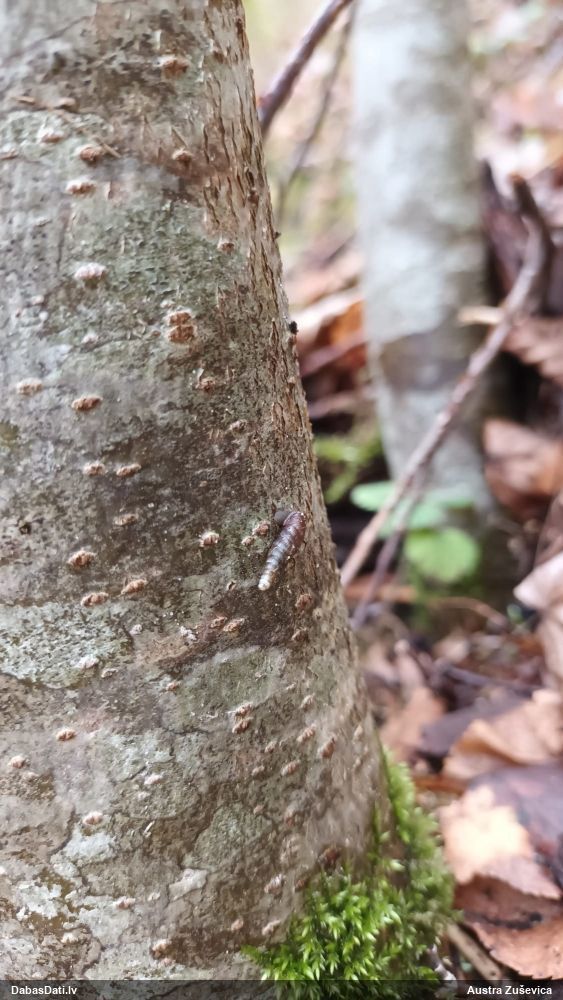 Raivo, nebūs Chaenotheca furfuracea, bet gan C.brachypoda (dabisku mežu indikatorsuga). C.furfuracea ir ar izteiktu laponi, daudz lielāki aķ un košāk zaļa krāsa