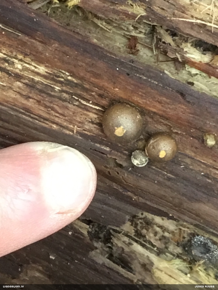 Varētu būt grubuļainais (Fuligo luteonitens), bet jāmikroskopē sporas, lai būtu droši