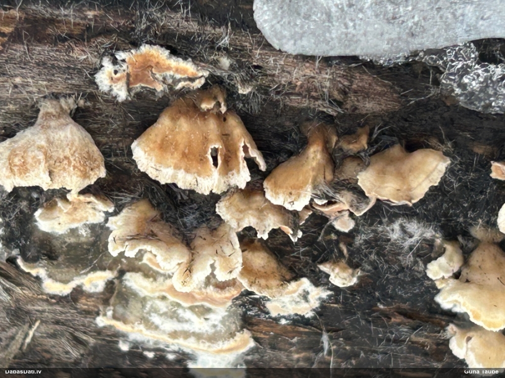 Heterobasidion annosum. Parasti uz priedēm, retāk uz citiem skuju kokiem, vēl retāk uz lapu kokiem, t.sk. uz bērziem.