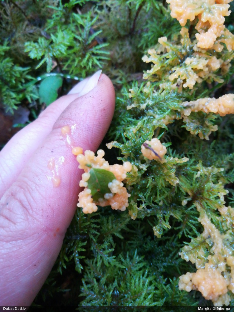 Skatoties uz nelīdzeno virsmu, var būt grubuļainais Fuligo luteonitens, bet droši to varētu pateikt mikroskopijā pēc sporām