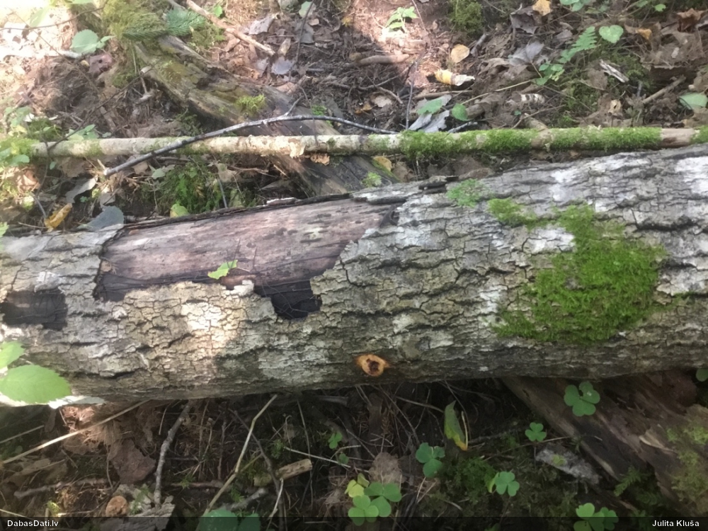 Šis varētu būt tāds piemērs, kad sāk dzīvi uz koksnes un tad uzplešas virsū sūnai. Man izskatās, ka šai vajadzētu būt rufai, nu tāds sarkans. Pat divi perīdiji 2. foto no apakšas tīri pārliecinoši - dzeltenais plānais un tad pa virsu malā var redzēt tumšo.