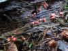 Šīs varētu būt jaunas pumpurītes (Physarum sp.) vai lampītes (Lamproderma sp.)