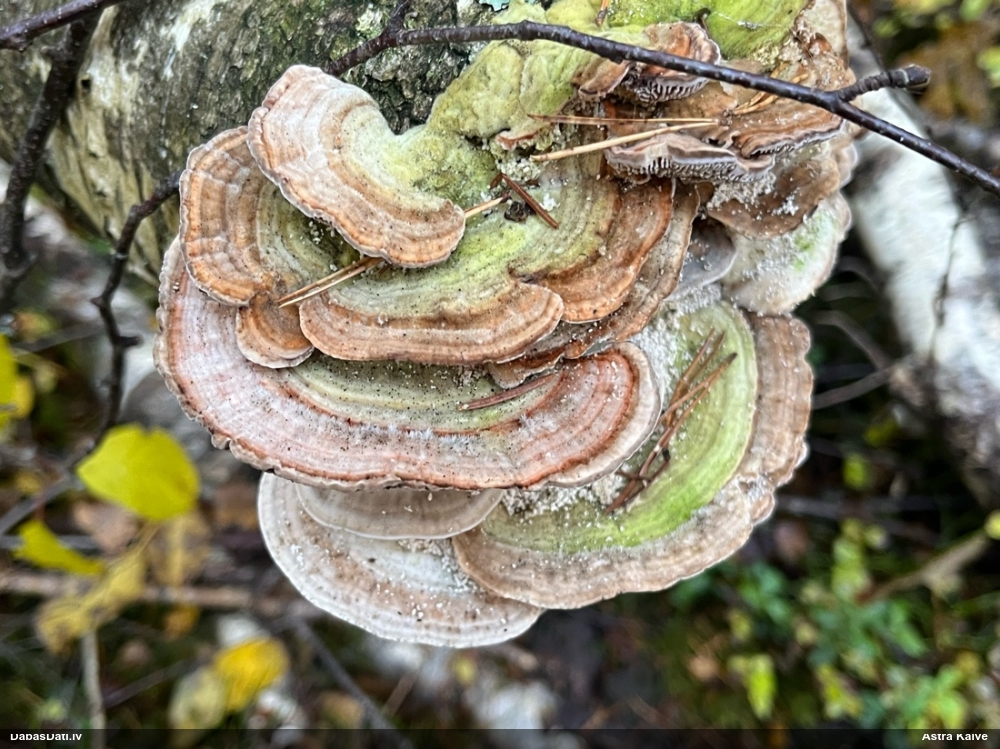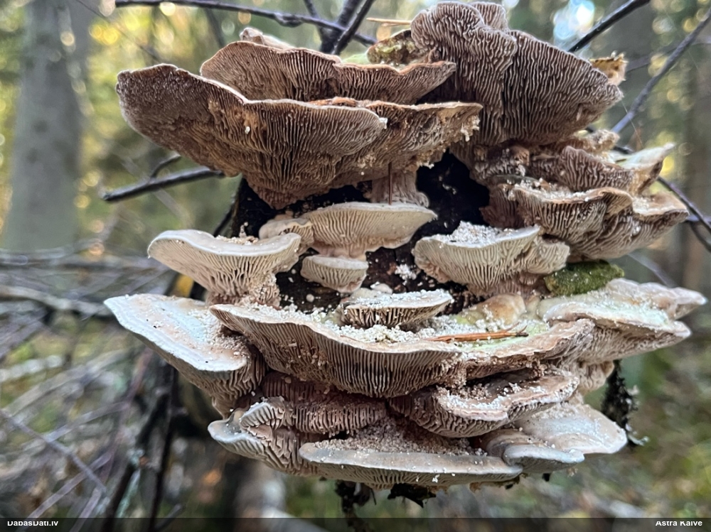 Varētu būt P.album, bet netipiski šķita, ka auga arī uz sūnām un vertikāli, ne kā pierasts redzēt uz koksnes un nokareni.