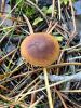Ļoti neparasta kombinācija - īsa melna kājiņa un apaļīgi plakana galviņa. Un uz nobirām. Gļotsēņu atslēga kā cerīgāko piedāvā nabas jāņodzīti, bet tai neredzu "nabiņu" un nobirām arī nav raksturīga. Šķirstot noteicēju, visas līdzīgās atduras pret pēcsniedzītēm, kas gluži nevarētu būt :D Olītēm melnas kājiņas nav tipiskas (ja tiešām melna), tad paliek lampītes. Par garkājas lampīti (kā blakus) vismaz pagaidām šo nosaukt grūti ;) Atliek cerēt, ka nobriedīs tiktāl, lai mistēriju izdotos atrisināt :)