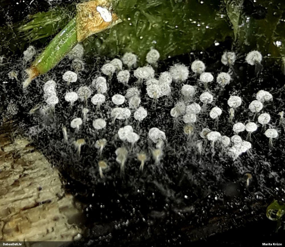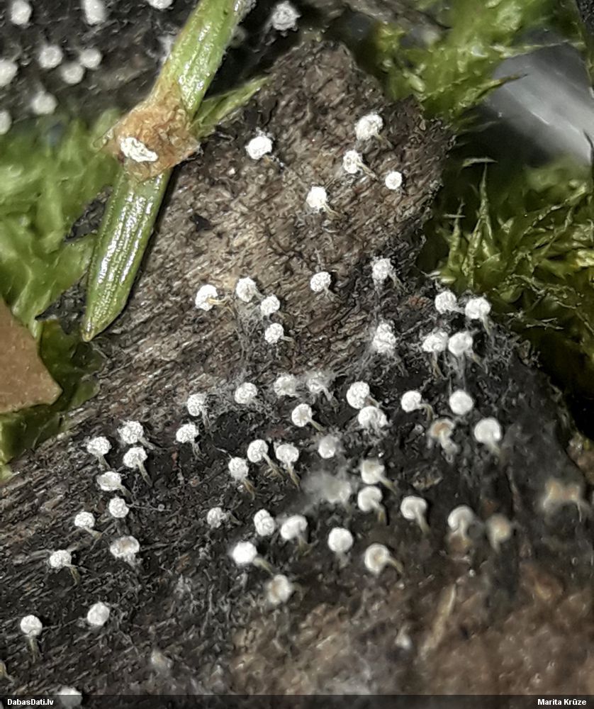 Šis man pašai sanāca pārsteigums. Ievācu paraugu ar domu "varbūt tur ir gļotsēne", dodot varbūtību apmēram pusprocentu, ka ir. Bet no mikroskopijas starp galīgi vecām sporām izdevās atrast ne tikai dažas labas, bet, galvenais, arī perfektus kapilīcija fragmentus, no kura suga, vēl kopā ar sporu pazīmēm, nosakāma nešaubīgi.
