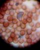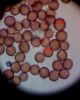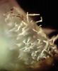 Šis bij pārsteigums. Ievācu bez cerībām, jo sakaltis. Hipotēze par gļotsēni, jo gļotaina apmale. Tā kā balts, sporu nebūs, neko zaudēt nevar, ielēju kastītē ūdeni (pat ne salvetes, vnk "dzīvu ūdeni") un aizmirsu. Krāmējoties pa kastītēm, atveru un - pārsteigums. Plānotā gļotsēne izaugusi 100x lielāka :D un izrādās sēne, kas mitrumā beidzot uzbriedusi. Kā tādu mikroskopēt, gan nezinu, jo tur tak receklis.. Tā ka vai pēdējie 2 mikro-foto par tēmu - nezinu.