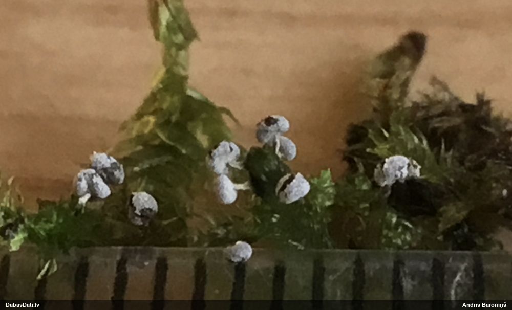 Vai tik nebūs medainā bumbulīte? Augļķermeņi vertikāli izstiepti, sporu mākonis ciešā klājienā.
