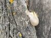 Uz trupējuša koka, pa daļai smiltīs kāpās. Piekopoju bildi. Sākumā pagāju garām, likās mandarīna miza.