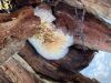 Rūtiņa ir 1mm, par kājiņu es arī nevaru saprast - drīzāk nav nekā ir :) Nobriedušas ir netīri pelēkbaltas ar ļoti trauslu perīdiju. Pagaidām daivās neplaisā, grūti pateikt, kā plaisā, ja nepieskaras augļķermeņiem. "Kraukšķīgs perīdijs", tas ir kā? Pie mazākā pieskāriena tas saplīst gabaliņos, bet vai kraukšķ? :) Sarkans nav, iekšpuse perīdijam balta, bet pskatīšos vēl.