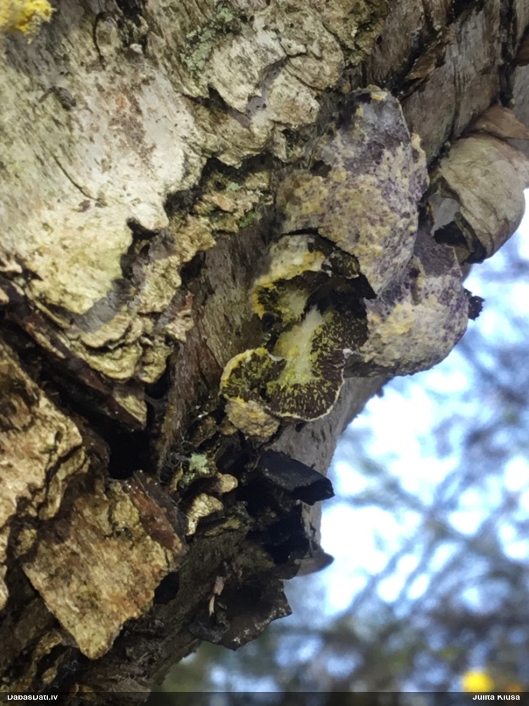 Sveiciens. Ieziņotā sugas atradne tika apmeklēta un noteikta līdz taksonam. Tā ir Sclerophora peronella (Ach.) Tibell. Nagliņas 0,7 - 0,8 mm garas, askusporas apaļas, vidēji 3,2 µm diametrā (n=16). Viena no retākajām ģints pārstāvēm. Vērtīgs ziņojums :) Biju patīkami pārsteikts - konkrētais sausoknis vēl bija savā vietā pēc vairāk nekā sešiem gadiem, ņemot vērā cik zibenīgas ir pašreizējās ainavas pārmaiņas. Uz blakus vīksnas sausokņa arī retā suga Trametes gibbosa, uz muzeja ēkām arī daudz reto nagliņu. Dvēseliska un iedvesmojoša vieta :)