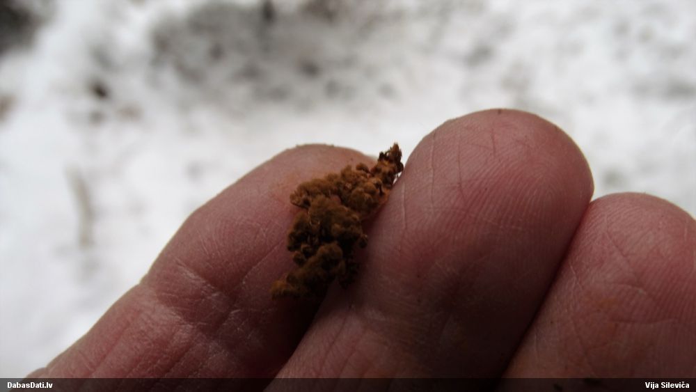 Šis man pašai sanāca pārsteigums. Ievācu paraugu ar domu "varbūt tur ir gļotsēne", dodot varbūtību apmēram pusprocentu, ka ir. Bet no mikroskopijas starp galīgi vecām sporām izdevās atrast ne tikai dažas labas, bet, galvenais, arī perfektus kapilīcija fragmentus, no kura suga, vēl kopā ar sporu pazīmēm, nosakāma nešaubīgi.