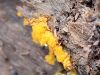 Man pēkšņi radās ideja - vai tur bija nu ļoti mitrs mikroklimats, egle ar melnalksni? Hipotētiski tādas dzeltenas var būt Diachea muscorum. Te bilde ir mazliet līdzīga: https://fr.wikipedia.org/wiki/Fichier:Craterium_muscorum,_Trawscoed,_North_Wales,_Aug_2016_-_Flickr_-_janetgraham84.jpg