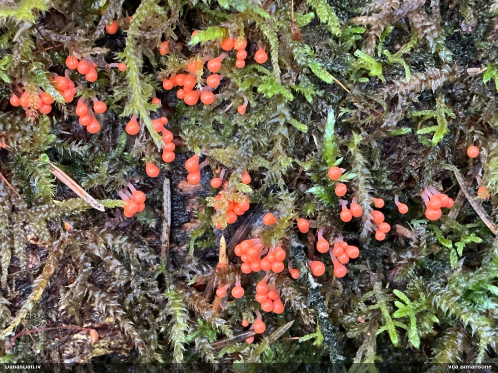 Paldies, Iveta! Julita, kā redzi – nevis dzīvs, bet tikai pusdzīvs ;) Par atrašanu – joprojām darbojos pēc principa bez piecām/sešām atrastām sugām no 250x250 m kvadrāta ārā neiet. Ja nav kritalu – rāpoju pa sūnām. Šis bija viens no kvadrātiem bez sugām, izvēlējos kritalu, tā bija patukša, blakus kritalai pamanīju šīs gļotsēnes. Beigās šajā vietā esmu iesprūdis, būs vēl daži interesanti atradumi. Tik jāatrod laiks mikroskopēšanai, sugu noteikšanai un salikšanai DD. Laika kā reiz šobrīd ļoti maz un brīvajos brīžos drīzāk gribas atkal aizskriet uz savu sūnu pleķi :) Par nosaukumu – domāju, ka rīkojamies līdzīgi kā ar Tavu Diachea (bij. Craterium) muscorum – tā kā šai sugai mums nav iegājies krāterītes nosaukums, saucam par vizulīti. Kaut, piekrītu, drīzāk izskatās pēc krāterītes.