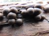 Pieliku vēl četrus foto: augļķermeņi no metāliskās krāsas paliek brūni; atradu kaut ko līdzīgu kolumellai, bet stiprāk uzpūšot tā "lodīte" izvēlās arā, atstājot iedobi; kātiņa galā palika neliels paplatinājums.