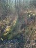 Satrūdējusi kritala mežā, nav dēļi. Iespējams, egle, jauktu koku mežs.