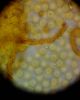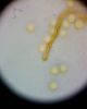 Kaut kas interesants :) Rudenī gļotsēnes attīstās lēnāk. Un ne vienmēr var uzminēt, kad tās ir gatavas sporu stadijai, resp., kā organizēt mitrumu. Vai šobrīd tiek mitrināts un viņas redz "dienas gaismu"? Iespējams, tās ir kādas olītes (Diderma). Reizēm tās pietiek palikt zem siltas lampas, un tās acu priekšā (sekunžu laikā) nobriest, maina krāsu, apvalciņš saplaisā un viss gatavs. Reizēm tā var sabojāt paraugu ;) Ja paraugs liels, var paeksperimentēt ar daļu, mēģinot pasildīt. Vēl pēc pāris dienām, ja nekas nemainītos, man droši vien beigtos pacietība, un es tādu pašu "iemestu mikroskopā", ja nu brieduma pietiek noteikšanai.