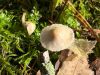 Ļoti neparasta kombinācija - īsa melna kājiņa un apaļīgi plakana galviņa. Un uz nobirām. Gļotsēņu atslēga kā cerīgāko piedāvā nabas jāņodzīti, bet tai neredzu "nabiņu" un nobirām arī nav raksturīga. Šķirstot noteicēju, visas līdzīgās atduras pret pēcsniedzītēm, kas gluži nevarētu būt :D Olītēm melnas kājiņas nav tipiskas (ja tiešām melna), tad paliek lampītes. Par garkājas lampīti (kā blakus) vismaz pagaidām šo nosaukt grūti ;) Atliek cerēt, ka nobriedīs tiktāl, lai mistēriju izdotos atrisināt :)