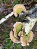 Šis varētu būt tāds piemērs, kad sāk dzīvi uz koksnes un tad uzplešas virsū sūnai. Man izskatās, ka šai vajadzētu būt rufai, nu tāds sarkans. Pat divi perīdiji 2. foto no apakšas tīri pārliecinoši - dzeltenais plānais un tad pa virsu malā var redzēt tumšo.