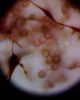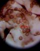 Žēl, ka mikroskopijā neviens kapilīcija mezgls (un vnk pavedieni) nav "aizķēries" (bet varbūt citos foto ir?), jo varētu būt F.licentii. Ovālo sporu gan jau arī netrūkst, kam šādā stadijā varētu arī nepievērst uzmanību un nesamērīt (bet būtu vajadzējis).