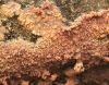 Šis ļoti interesants. Sporas ļoti traumētas, bet tām, kas ir veselas, ir diezgan skaidrs raksts, kas neatbilst nekam no man zināmiem ragansviestiem vai pumpurītēm (pat neņemot vērā izmēru), bet tīri labi atbilst baltapaļajai krāterītei, kas tā nevar būt, jo parauga "ciešais kamoliņš" ir stipri lielāks par tādu. Sporas pēc izmēra varētu atbilst Fuligo licentii, bet no dzeltenā te ir stipri maz. Ja vienīgi ir kāds nobriedušāka attēls, kas rāda, ka ir bijis dzeltens, bet no ilgas stāvēšanas izbalējis.
