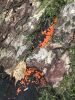 Nevar saprast, uz kā auga - vai tas ir nobirās, vai uz kritalas mizas? Abas hipotēzes ir "pa tēmu", bet man "nepatīk" kopskats, kur skaidri redzams, ka vairāki augļķermeņi ir cieši kopā, bet tas nav raksturīgs ne vienai, ne otrai hipotēzei, kur augļķermeņi tipiski ir nodalīti. Ļoti interesanti, ja ir paraugs, tad kāds tas izskatās tagad, un vispār to vajadzētu mikroskopēt.