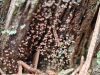 Izskatīju zinātnē aprakstītās Badhamia. Un Badhamiopsis. Tuvākā izskatās Badhamiopsis nivisimulans, kam raksturīgas ciešas grupas uz dzīviem kokiem (bet vai šis ir dzīvs?). Sporas līdzīgas, bet te raksturīgas arī dažas ļoti ovālas un lielas sporas, kādas foto neredz, bet varbūt ir? Un jābūt ar gaišu līniju pāri, to pagaidam neatradu. Bet tonis un kārpas līdzīgas. Izmēram būtu jabūt (10-)11-14 mkm vai ovālām garākām. Es teiktu, ka šai līdzīga, bet cita suga. Bet citu man piedāvājumā pagaidām nav. Pēdējā foto teiktu, ka sporas negrupējas, tad atkrīt B.juliae. Bet tikko pamanīju priekšpēdējo foto un tagad man nav pārliecības, grupējas vai nē.