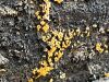 Man pēkšņi radās ideja - vai tur bija nu ļoti mitrs mikroklimats, egle ar melnalksni? Hipotētiski tādas dzeltenas var būt Diachea muscorum. Te bilde ir mazliet līdzīga: https://fr.wikipedia.org/wiki/Fichier:Craterium_muscorum,_Trawscoed,_North_Wales,_Aug_2016_-_Flickr_-_janetgraham84.jpg