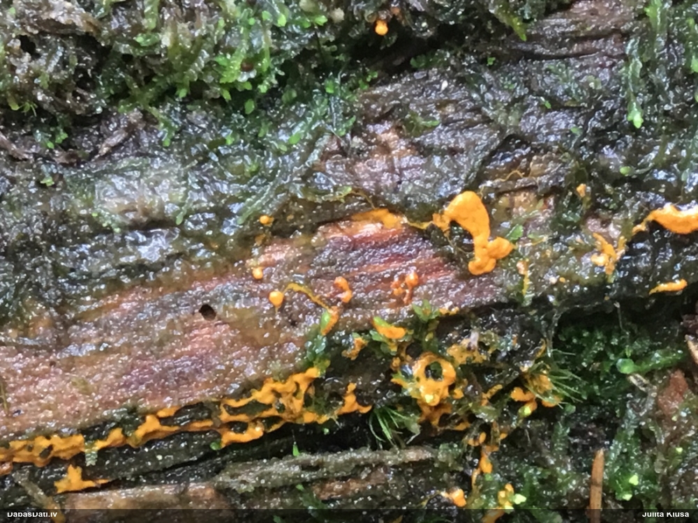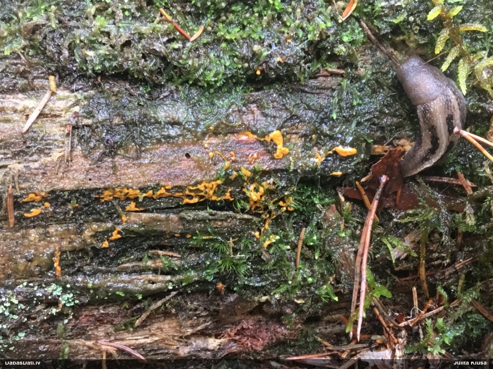 Paldies, Iveta! Julita, kā redzi – nevis dzīvs, bet tikai pusdzīvs ;) Par atrašanu – joprojām darbojos pēc principa bez piecām/sešām atrastām sugām no 250x250 m kvadrāta ārā neiet. Ja nav kritalu – rāpoju pa sūnām. Šis bija viens no kvadrātiem bez sugām, izvēlējos kritalu, tā bija patukša, blakus kritalai pamanīju šīs gļotsēnes. Beigās šajā vietā esmu iesprūdis, būs vēl daži interesanti atradumi. Tik jāatrod laiks mikroskopēšanai, sugu noteikšanai un salikšanai DD. Laika kā reiz šobrīd ļoti maz un brīvajos brīžos drīzāk gribas atkal aizskriet uz savu sūnu pleķi :) Par nosaukumu – domāju, ka rīkojamies līdzīgi kā ar Tavu Diachea (bij. Craterium) muscorum – tā kā šai sugai mums nav iegājies krāterītes nosaukums, saucam par vizulīti. Kaut, piekrītu, drīzāk izskatās pēc krāterītes.