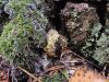 Šis ļoti interesants. Sporas ļoti traumētas, bet tām, kas ir veselas, ir diezgan skaidrs raksts, kas neatbilst nekam no man zināmiem ragansviestiem vai pumpurītēm (pat neņemot vērā izmēru), bet tīri labi atbilst baltapaļajai krāterītei, kas tā nevar būt, jo parauga "ciešais kamoliņš" ir stipri lielāks par tādu. Sporas pēc izmēra varētu atbilst Fuligo licentii, bet no dzeltenā te ir stipri maz. Ja vienīgi ir kāds nobriedušāka attēls, kas rāda, ka ir bijis dzeltens, bet no ilgas stāvēšanas izbalējis.