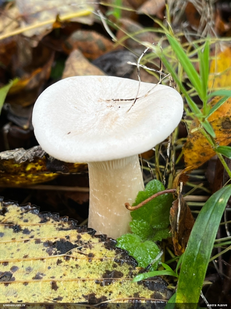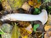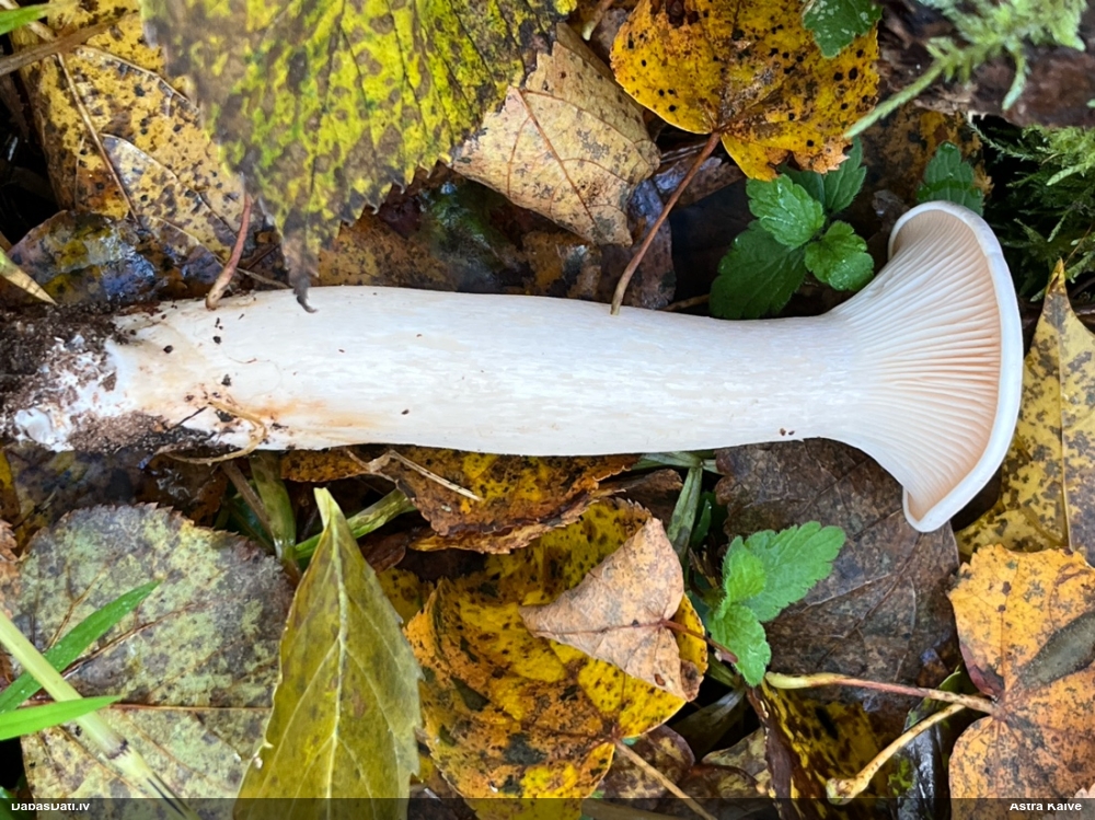 Ļoti neparasta kombinācija - īsa melna kājiņa un apaļīgi plakana galviņa. Un uz nobirām. Gļotsēņu atslēga kā cerīgāko piedāvā nabas jāņodzīti, bet tai neredzu "nabiņu" un nobirām arī nav raksturīga. Šķirstot noteicēju, visas līdzīgās atduras pret pēcsniedzītēm, kas gluži nevarētu būt :D Olītēm melnas kājiņas nav tipiskas (ja tiešām melna), tad paliek lampītes. Par garkājas lampīti (kā blakus) vismaz pagaidām šo nosaukt grūti ;) Atliek cerēt, ka nobriedīs tiktāl, lai mistēriju izdotos atrisināt :)